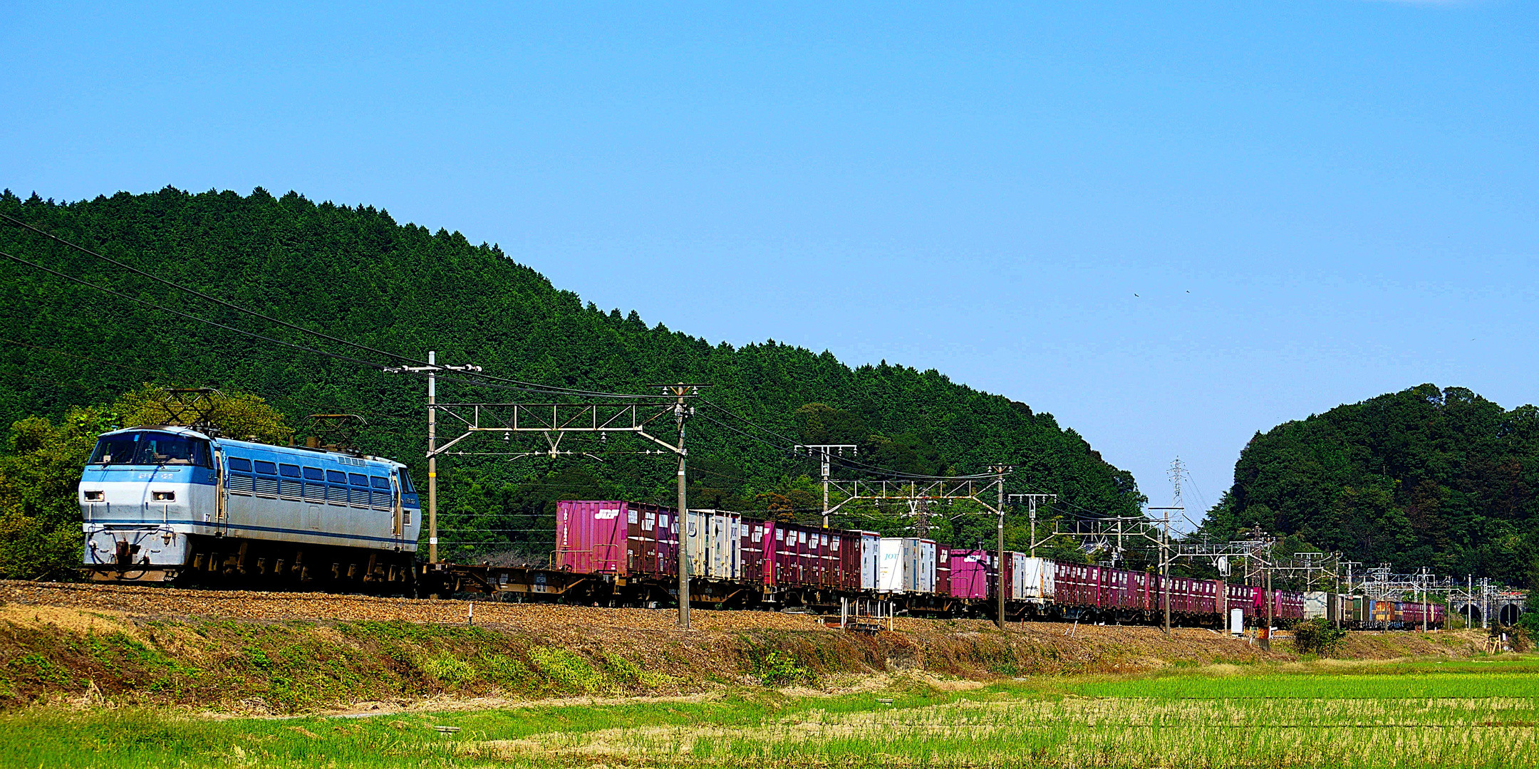 強者どもの歴史を騙る安土城跡の麓を難波へ向かって下る5085レ牽引のEF66 122号機