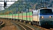 緑に赤いラインの福通レールエキスプレス56レ牽引のEF66 101号機の丸目が可愛いサメ君