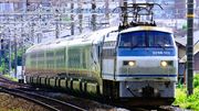 神戸川崎重工で落成したE001形TRAIN SUITE四季島7両の甲種輸送を担当したEF66 115号機の華やかな艶姿