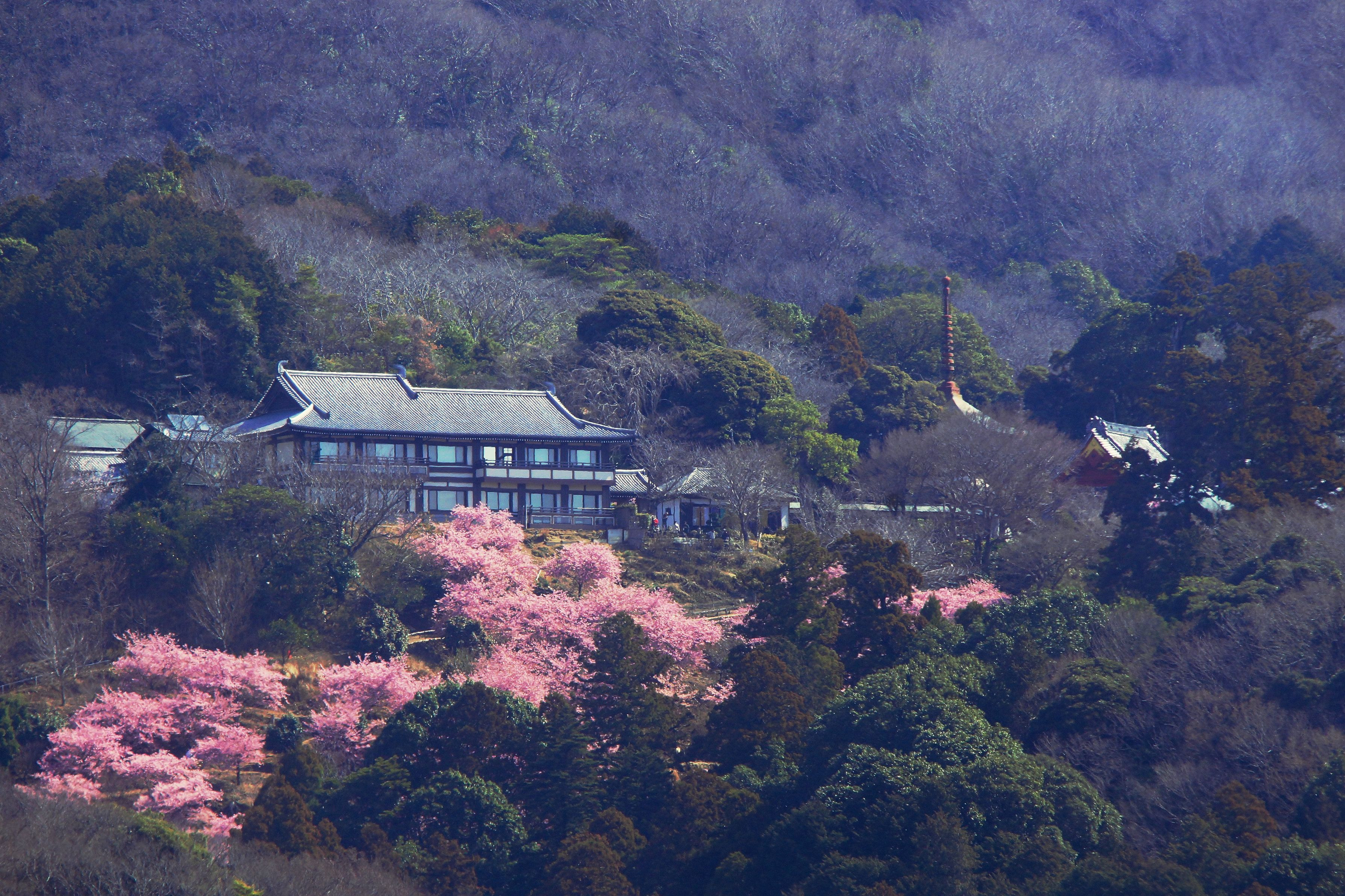 雨引山楽法寺(雨引観音) 河津桜の南斜面 この後、ソメイヨシノ、山桜と続きます。