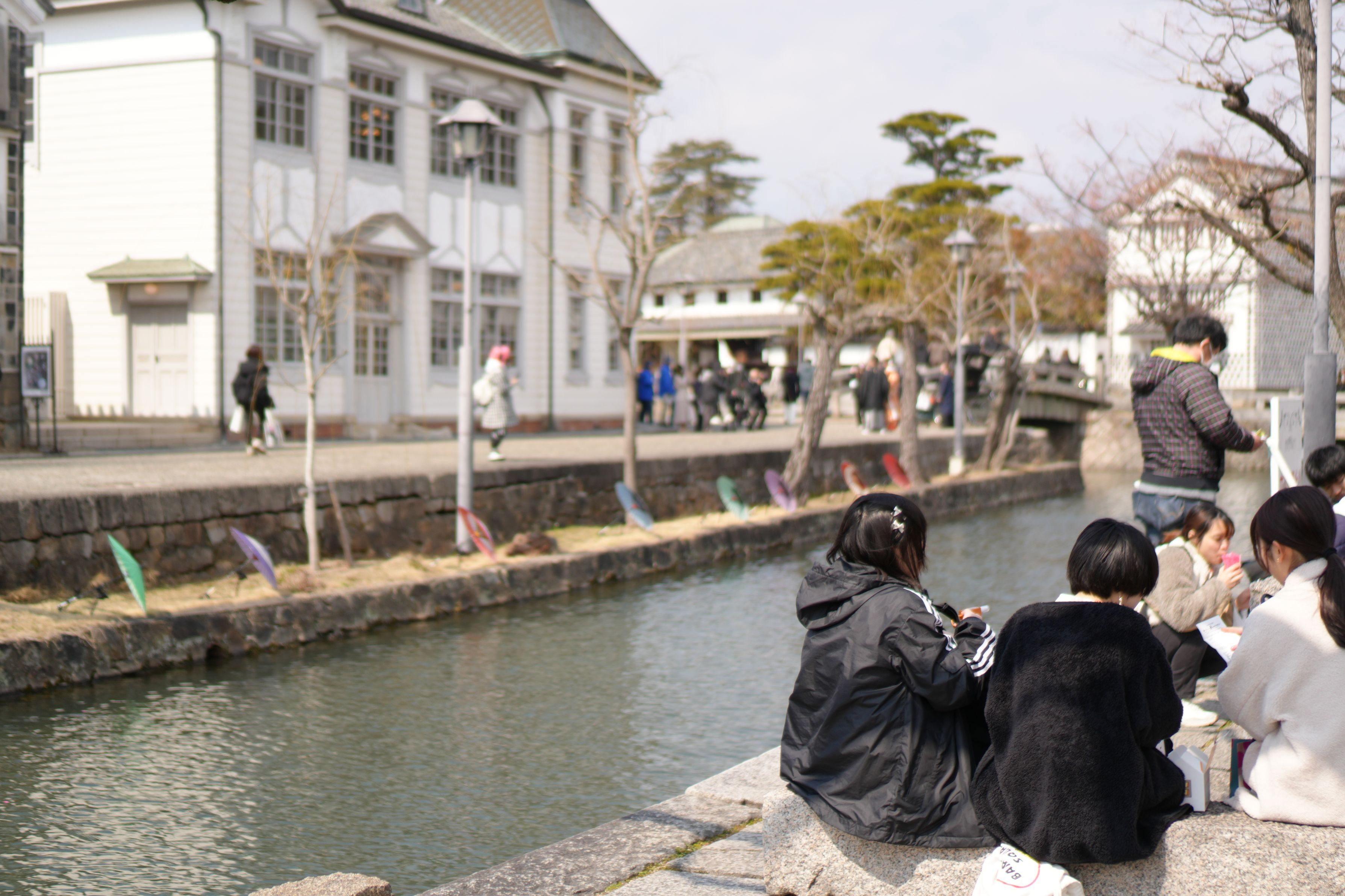 先日倉敷市の美観地区に行って撮った物です。 暖かくなってきたので久しぶりにカメラを持ってスナップを撮っていたのですが、 天気は暖かそうに見えてまだ実際は冬の寒さが残っているなと感じる一枚です。