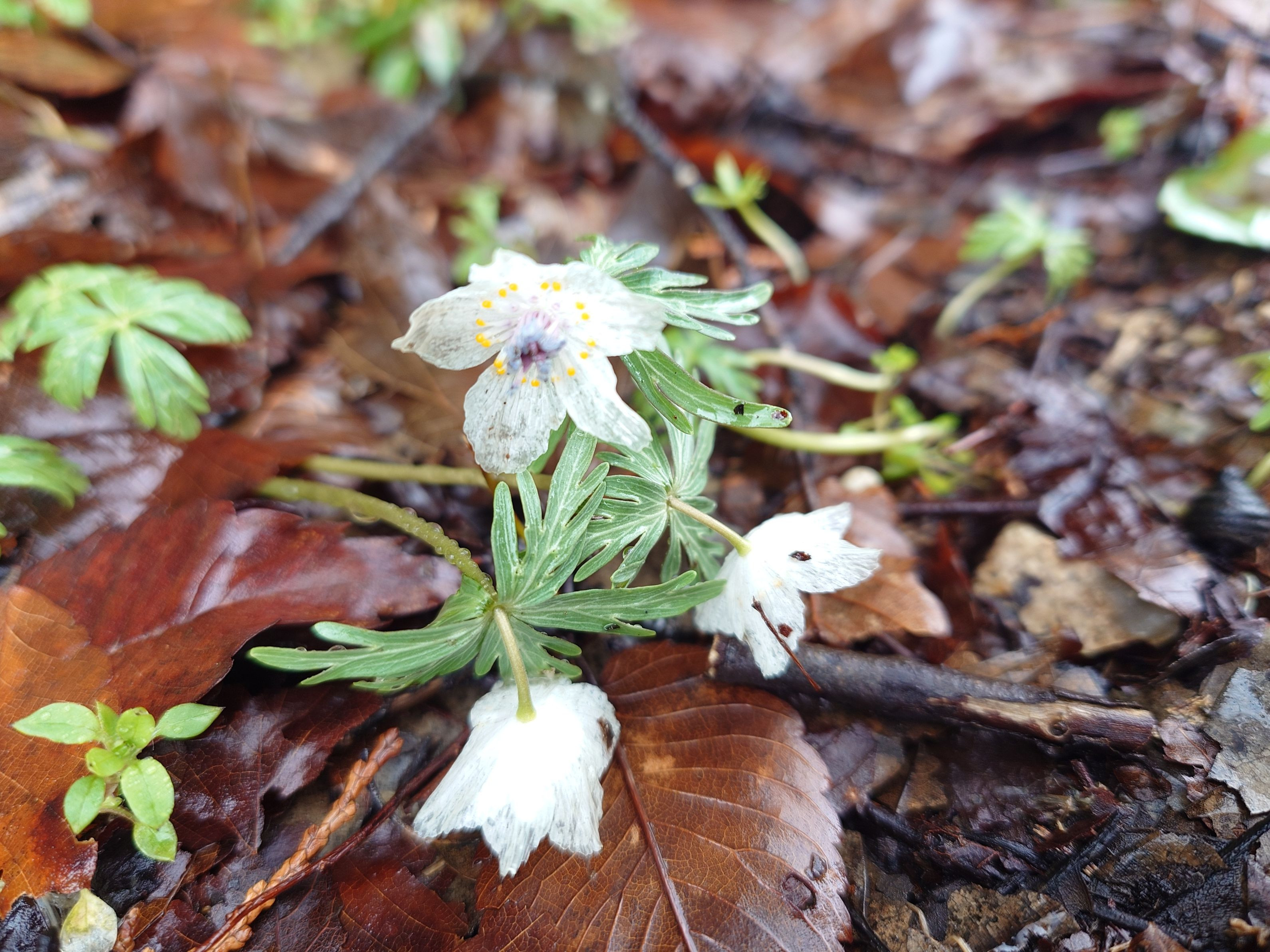 雨に濡れた節分草(セツブンソウ)がサンカヨウのように透明クリスタルで美しかった! #フラワー2025#