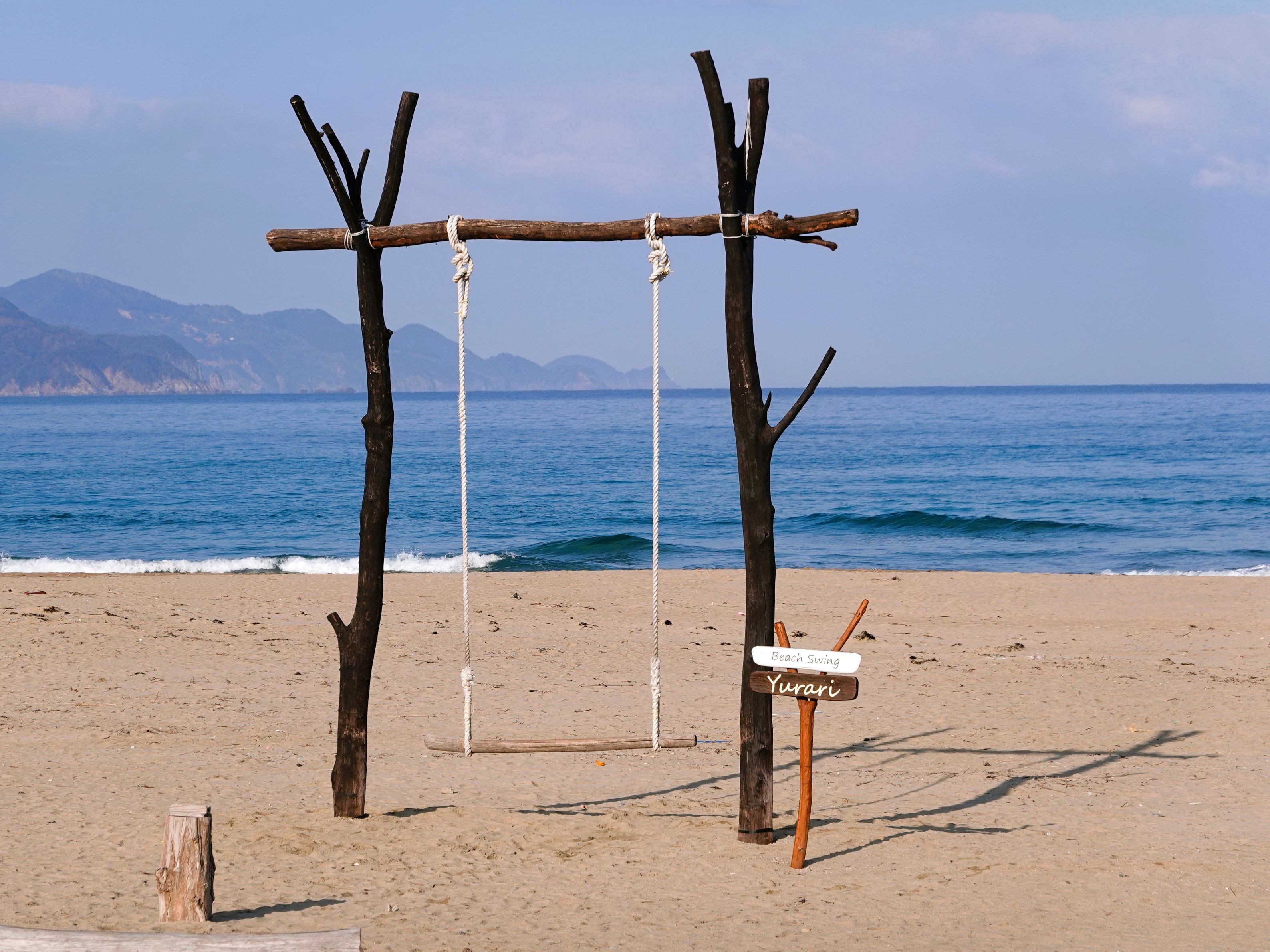 京丹後市 夕日が浦温泉のブランコ 早朝に貸し切りでした。