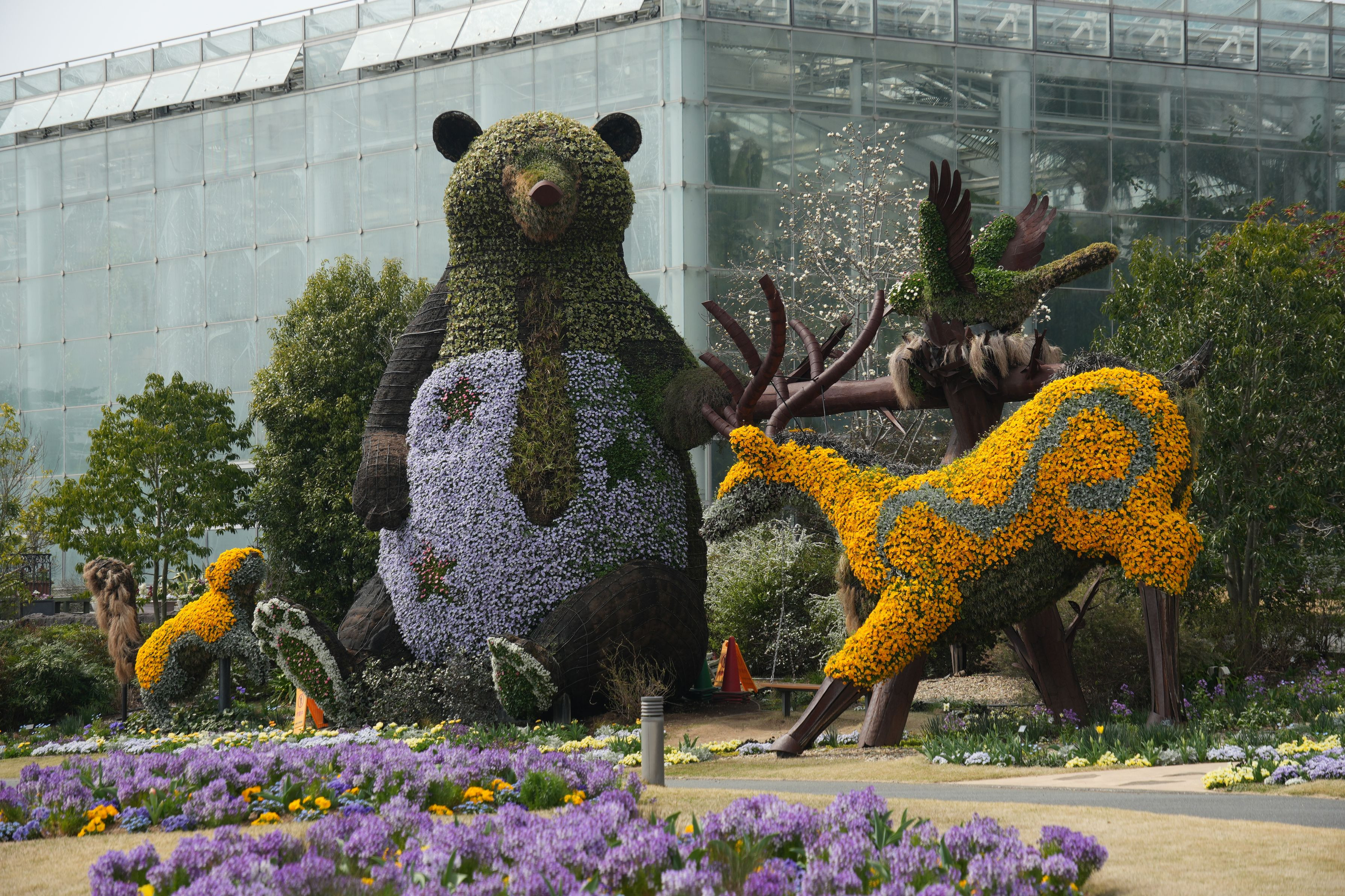 場内の熊くん他です 花で周りを飾っています