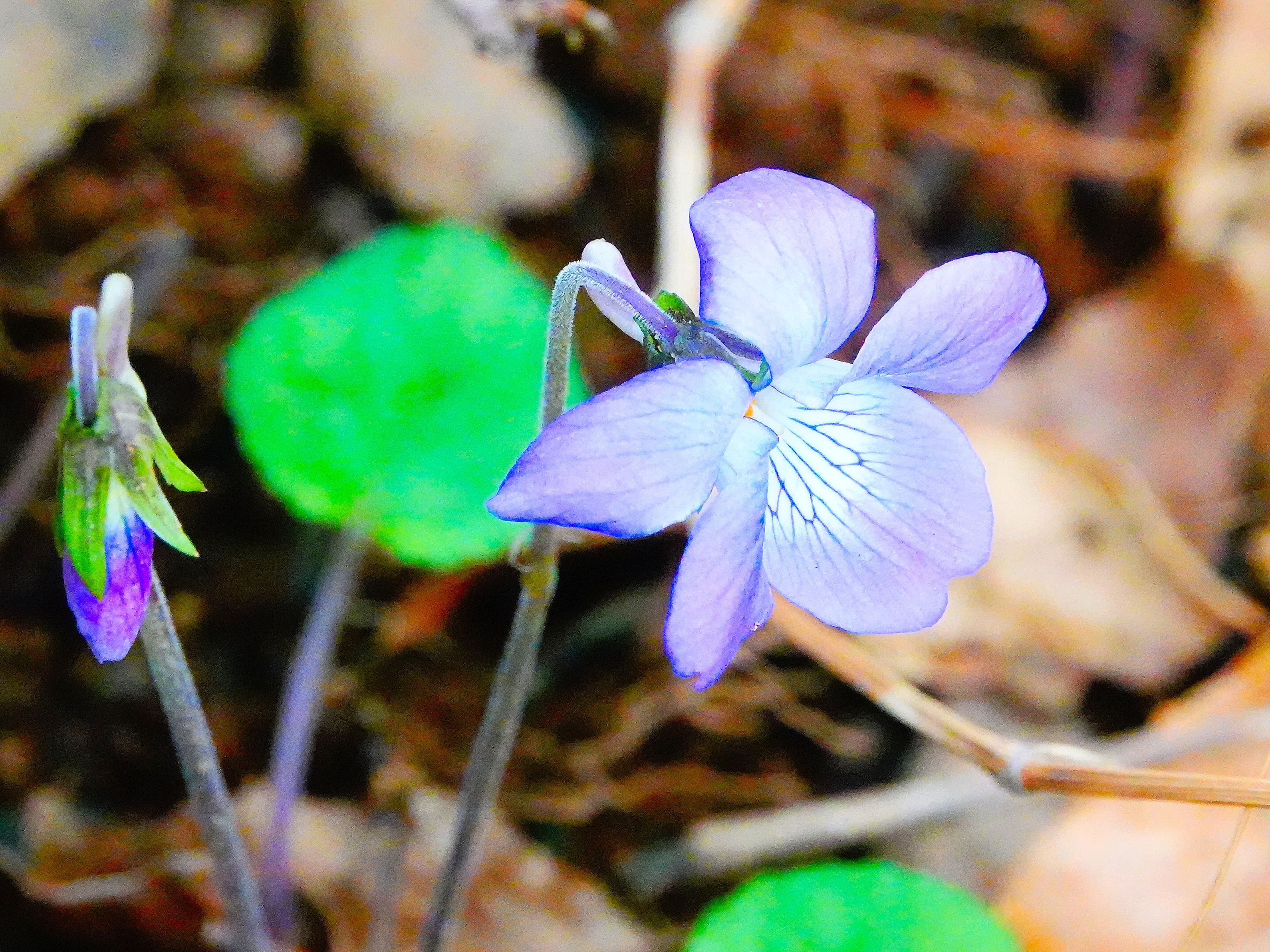 #フラワー2025# バードウォッチングのマイフィールドの山歩きで、まだ寒い中、最初に咲いたすみれです。 今年はものすごく遅い開花でした。