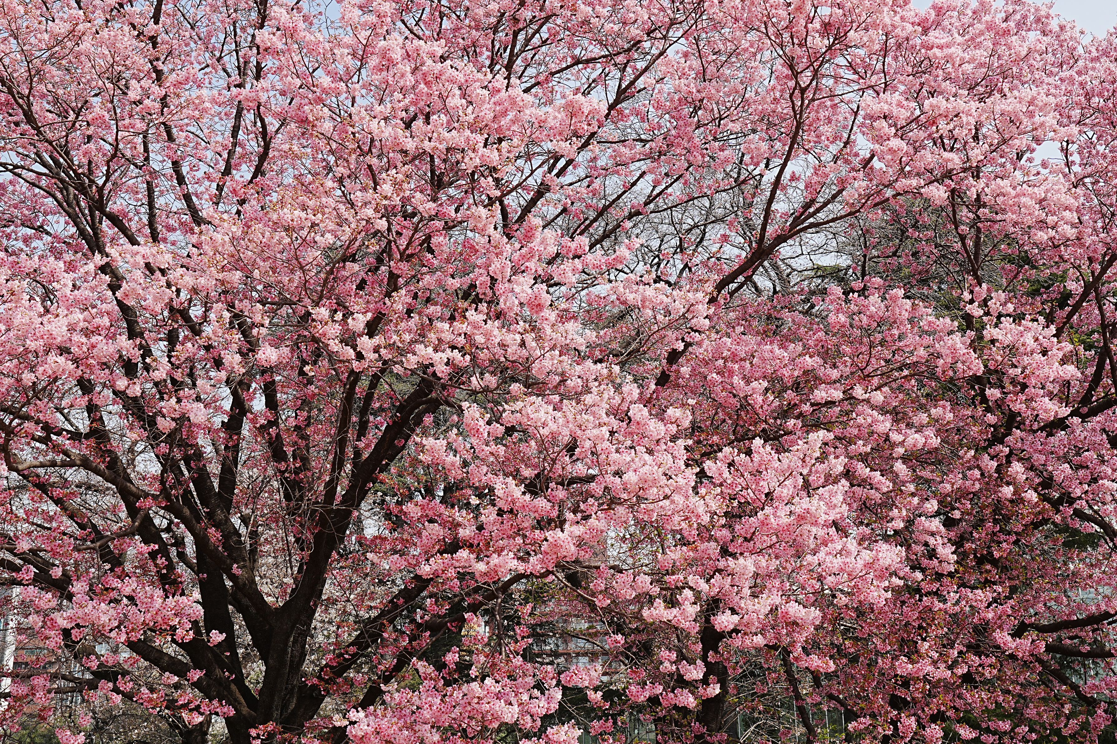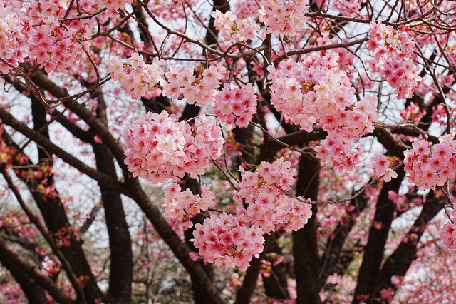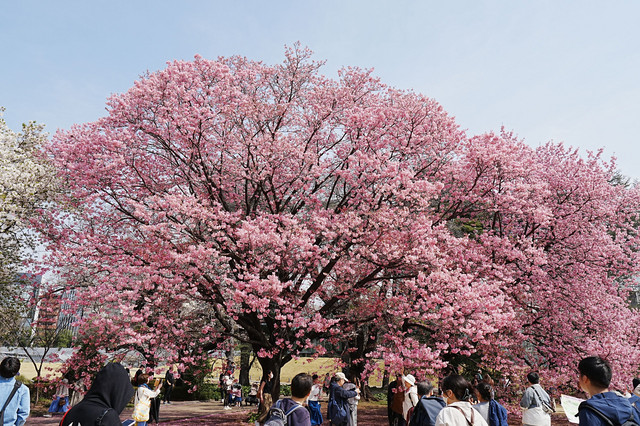 「ヨウコウ」とは桜の品種です。ピンク色が濃く、早咲きです。ちょうど満開になったばかりの様で、勢いがあります。ひときわ目立ってました。