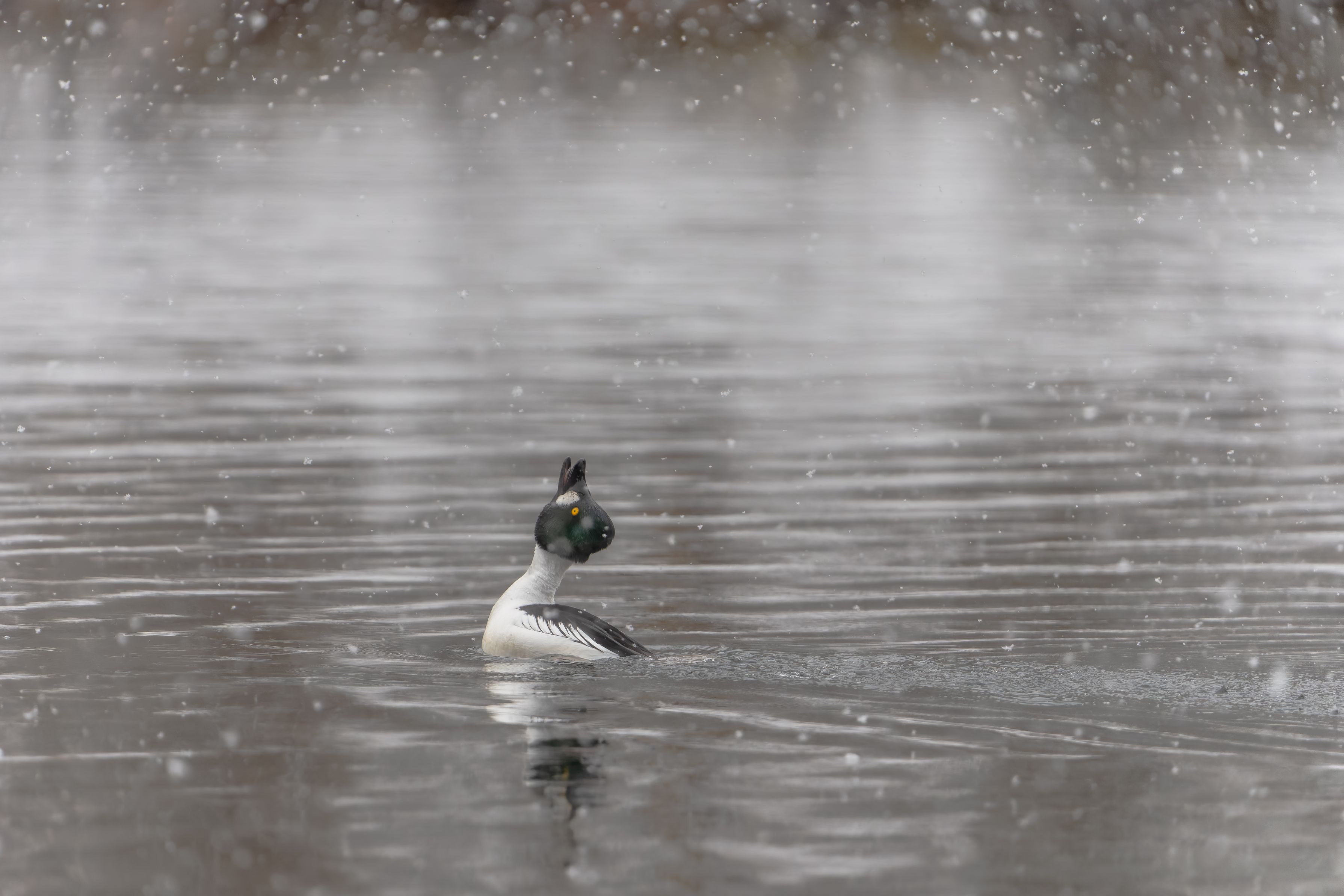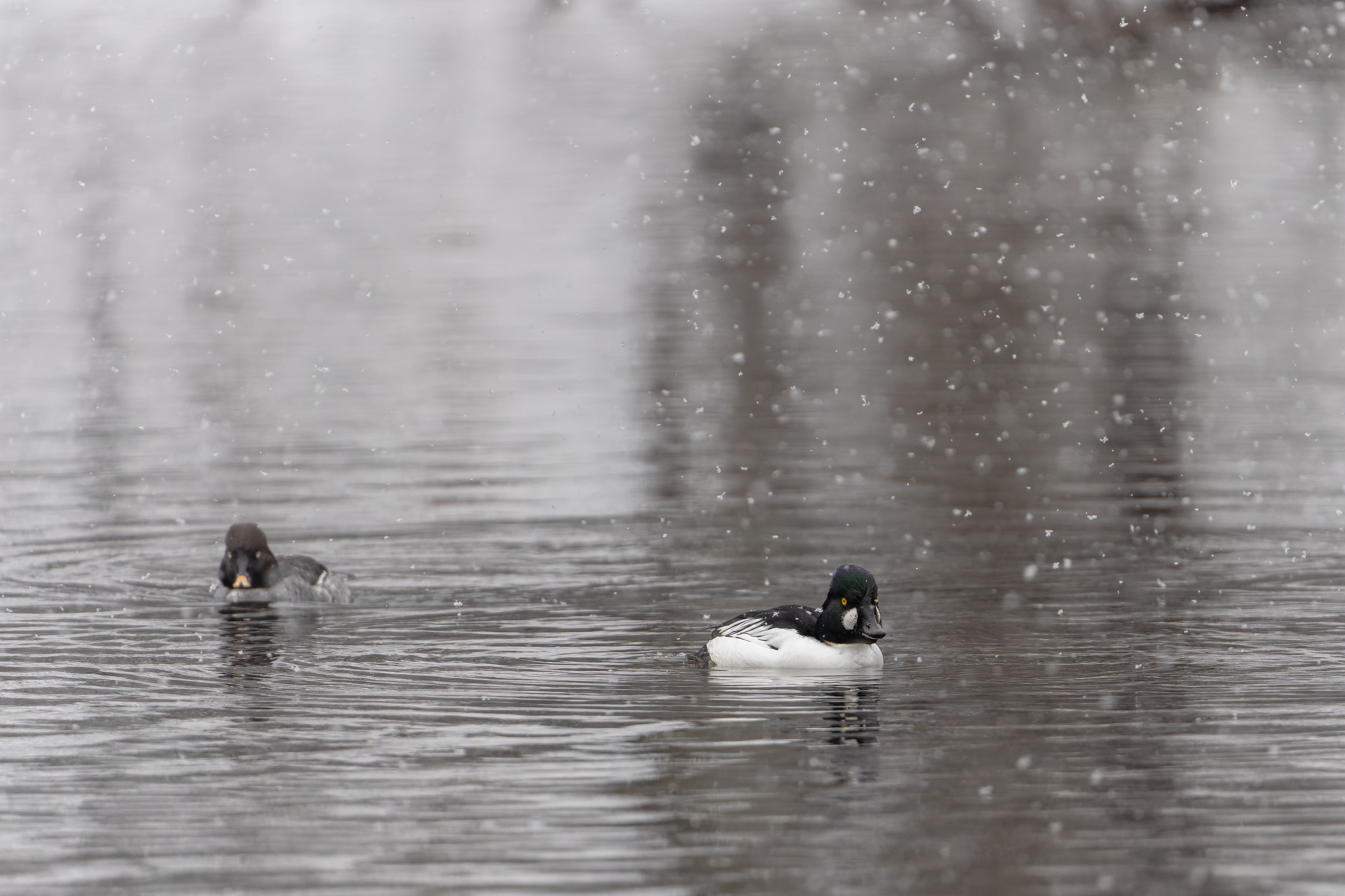 製品情報>My Sony>αcafe>雪が降る中、小さな池にホオジロガモのペアが居ました(TAMAさん)