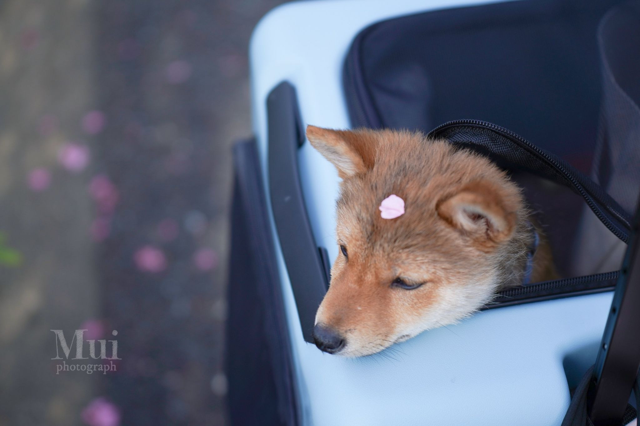 偶然愛犬の額に舞い落ちてきた桜の花びら🌸なんだか幸せな気持ちに