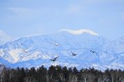 新篠津村でオオハクチョウとマガンが空を飛んでました。田んぼで休憩したり食べたりしてました。田んぼでオオハクチョウを見るようになると春を感じます。