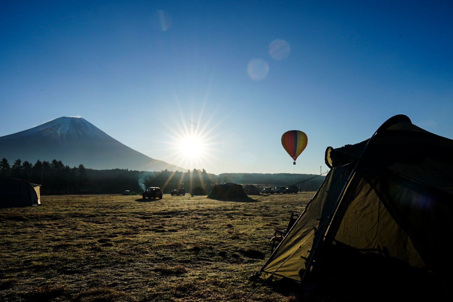 極寒の中、仲間たちと迎えた富士の朝