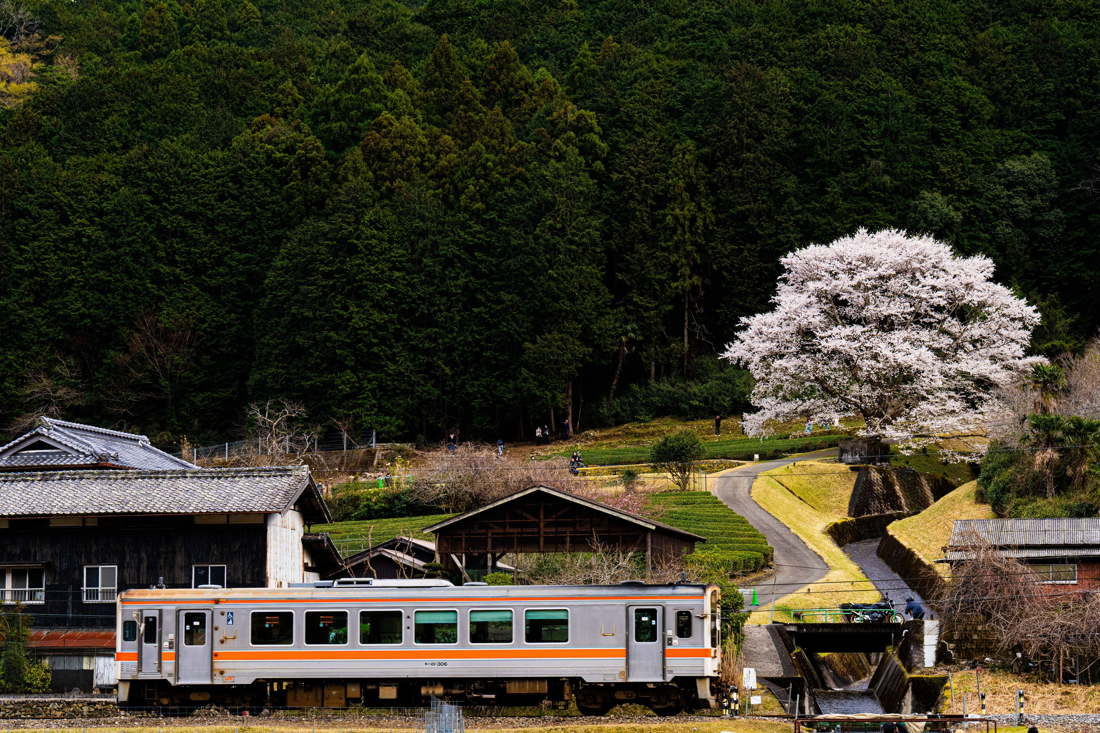 竹原の淡墨桜と名松線。 列車と桜が重なるのが定番ですが、敢えてずらして横構図