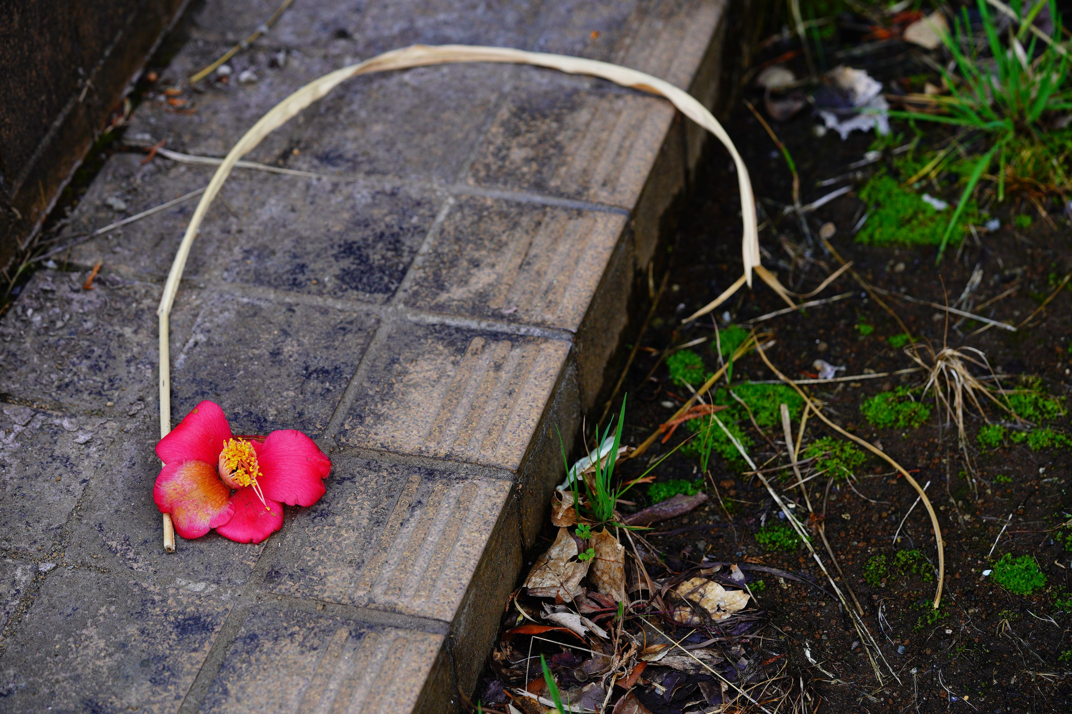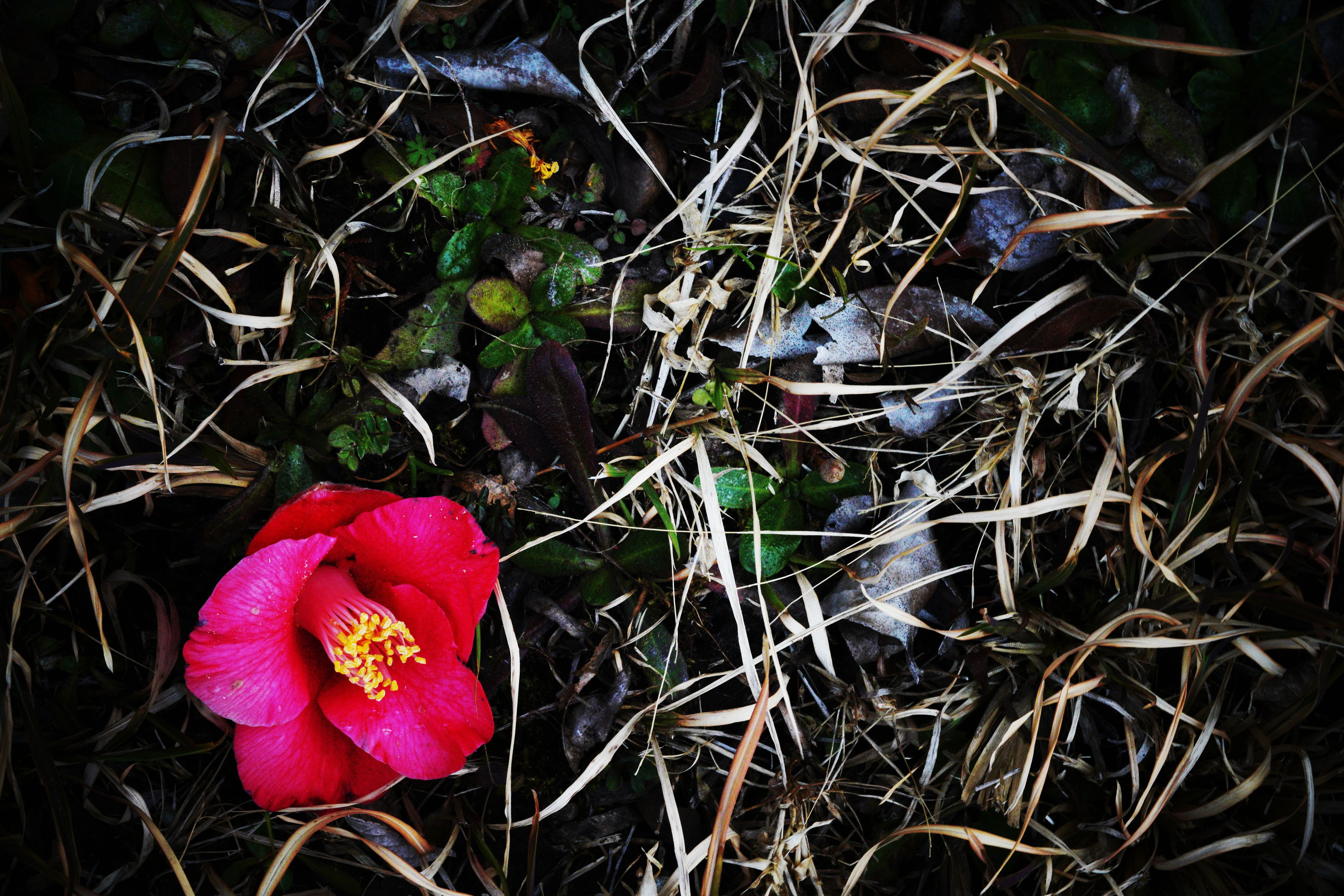 まだまだ咲き誇っている仲間が数多くいますが、皆さんよりも私は短命のために先に地上の花となりました、しかしながら地に落ちても意地で姿かたちを保ちながら、例え踏みつかれても残りの僅かな時間を保ちます。