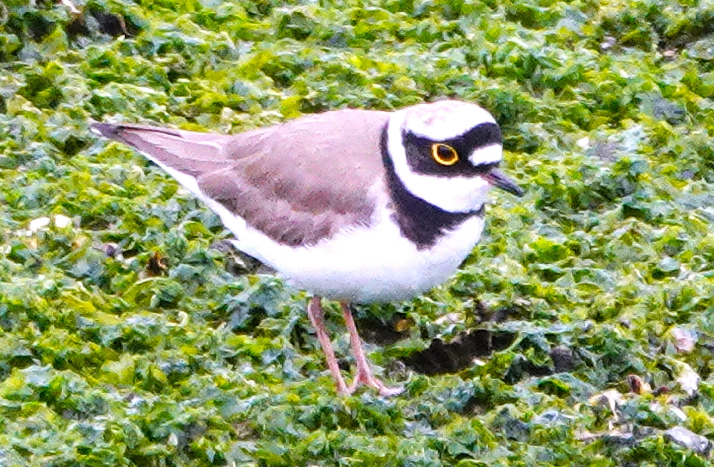 最近見なくなったコチドリが2羽やって来てアオサの中の餌を探していました。