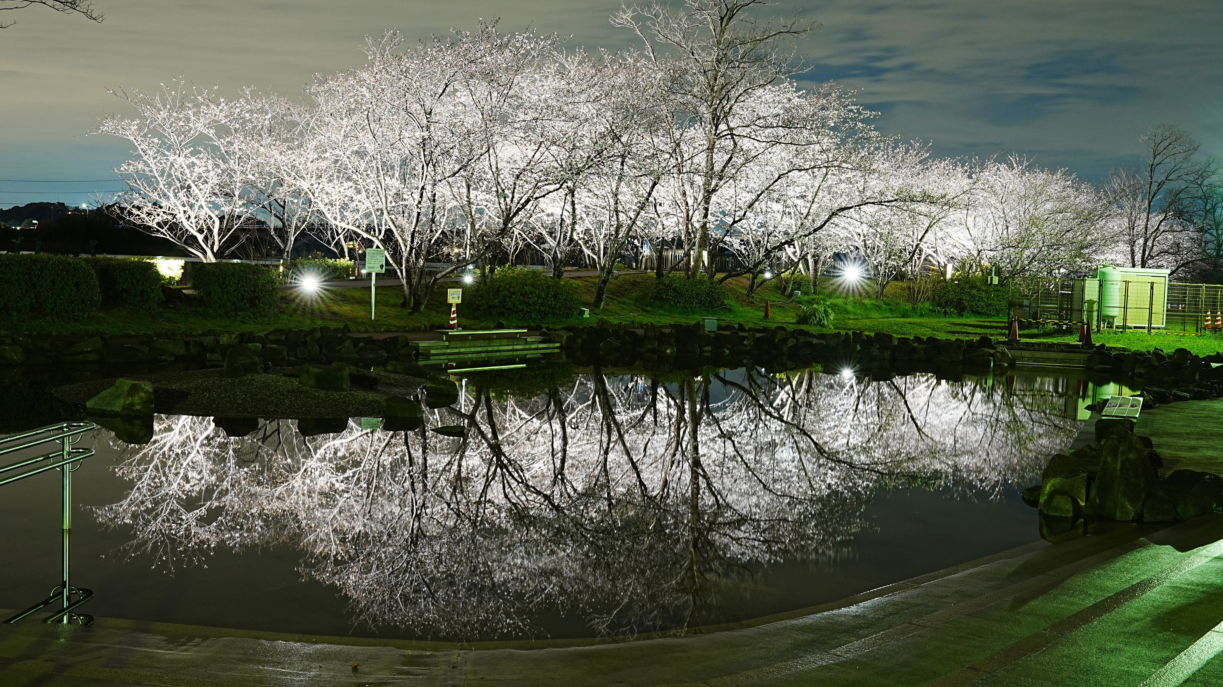 まだ5分咲きくらいでしたー 昼間は人の多い公園ですが、雨+夜なので、人少なめでした。 #フラワー2025#