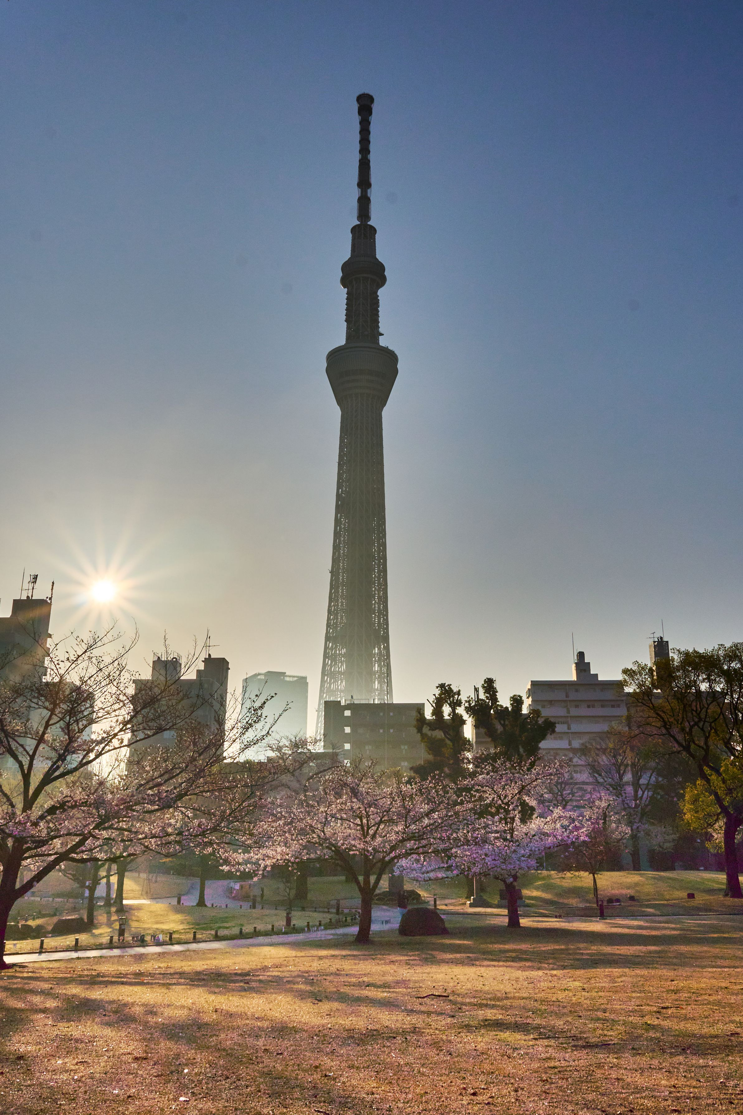 日の出、昼は花見客で賑わう隅田公園。 桜の影がのびのびと。 #フラワー2025#