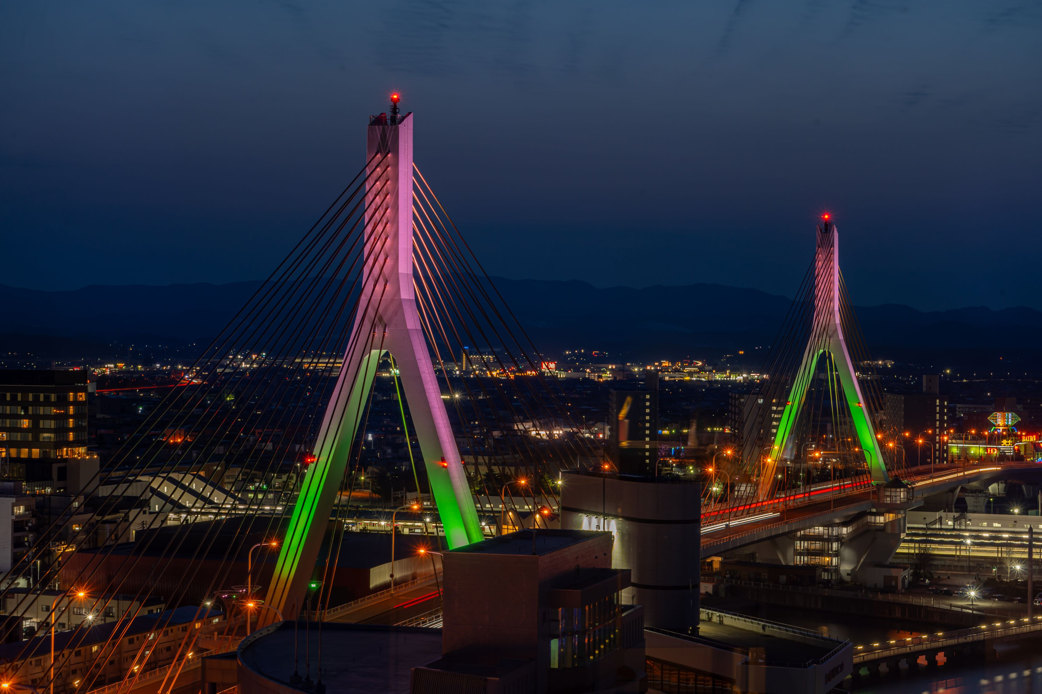青森ベイブリッジのライトアップです。
