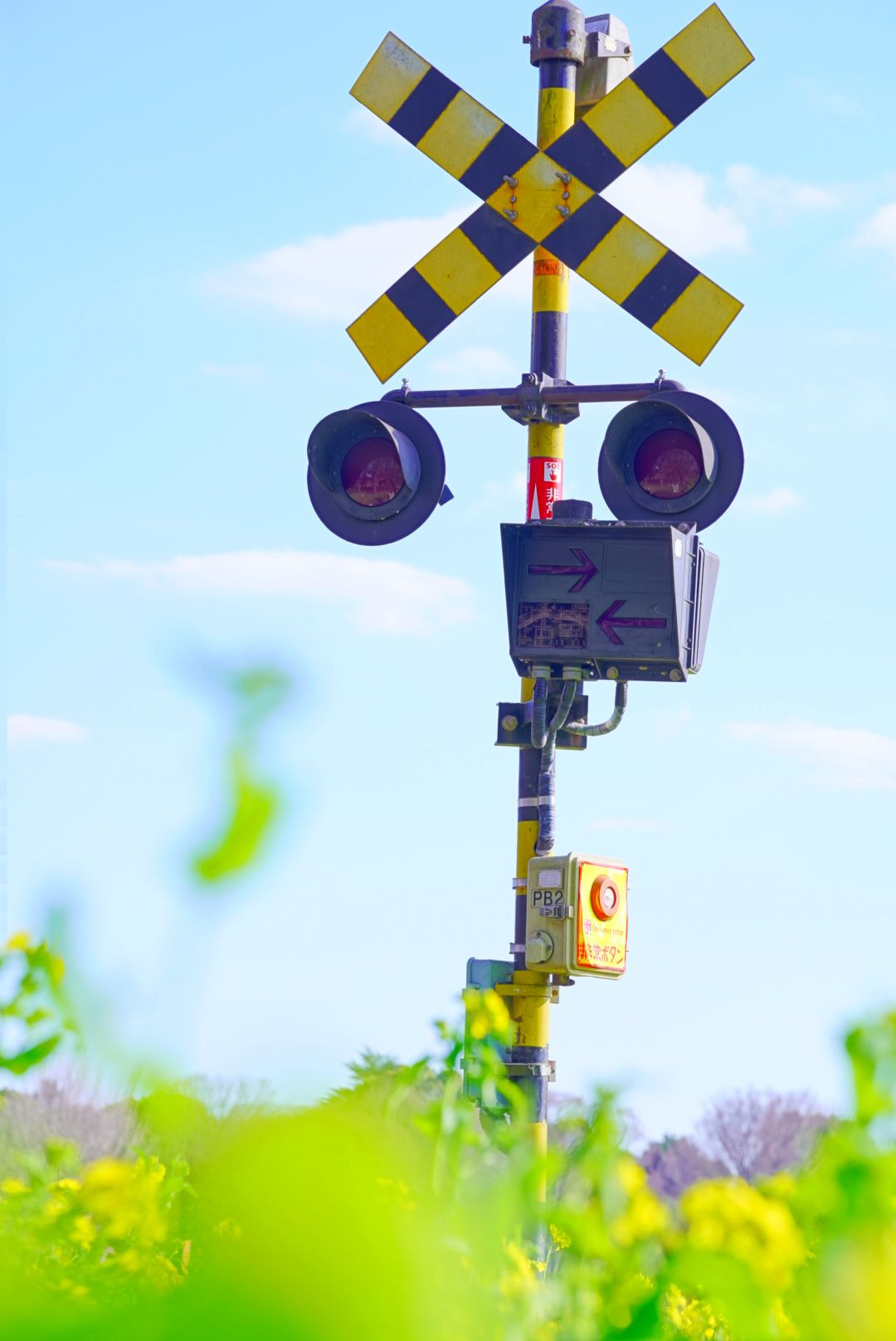 昭和記念公園の菜の花エリアに、 素敵な踏切がありました。