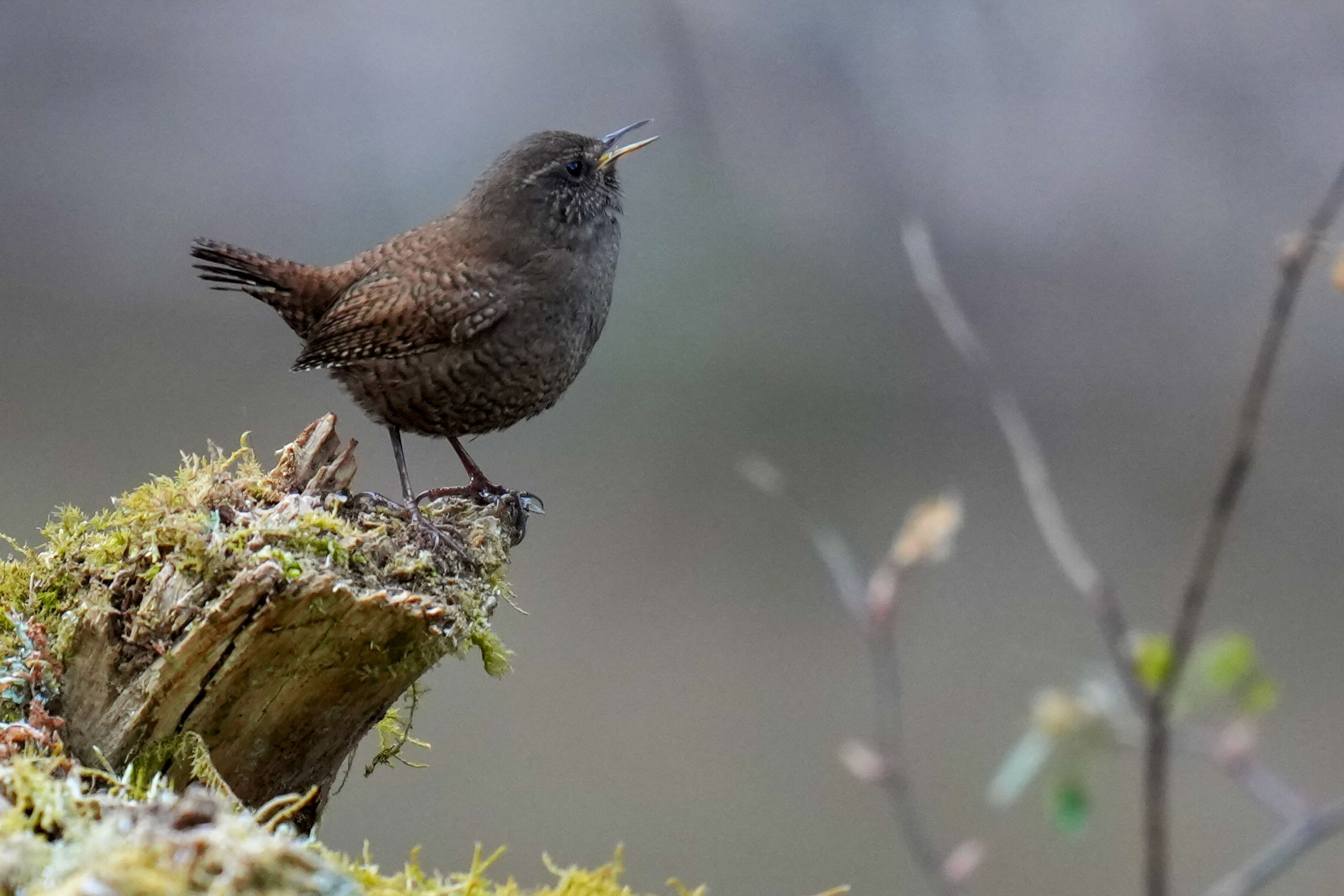 春になるとあちらこちらで鳥の鳴き声が・・。 ミソサザイも一緒に鳴いてます。 歌を歌っているように!!