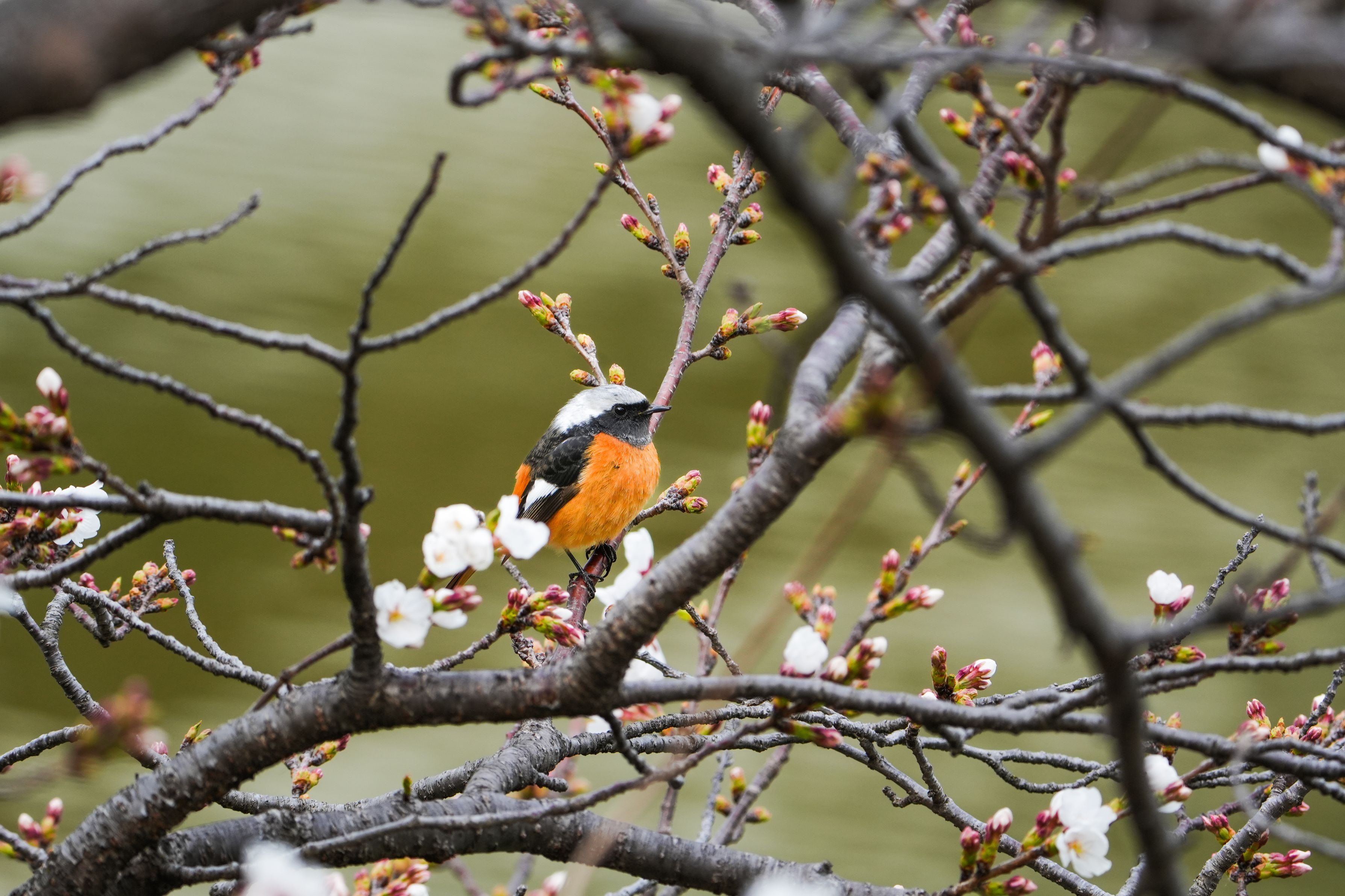 桜の木の枝被りでピント迷いながらジョビオさん撮れました