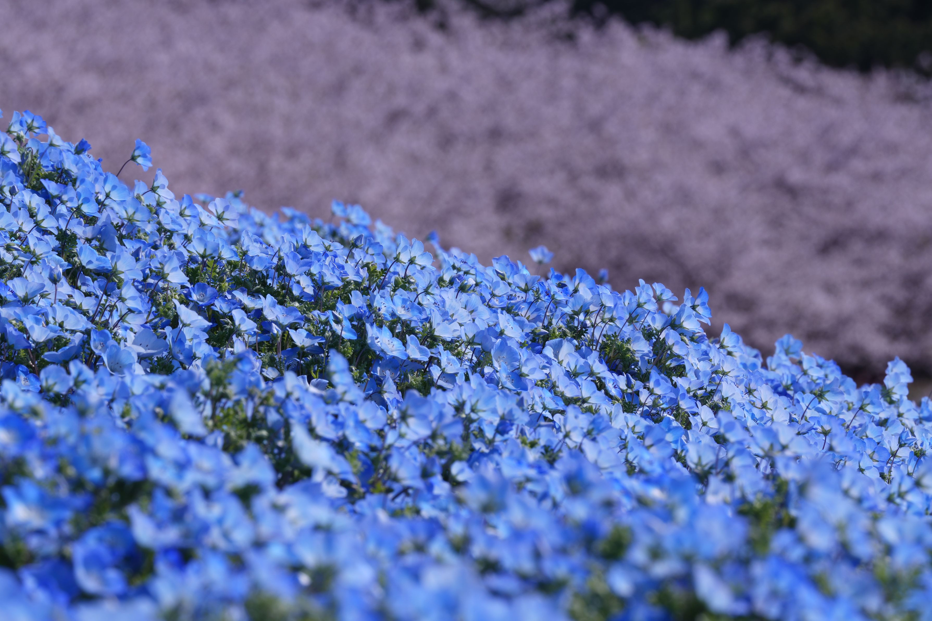 20250406。今年の最終花見シーズン。海の中道海浜公園の無料入園日を利用して、開園と同時にネモフィラと桜の撮影に勤しんだ。2025でこの風景を撮れるのはこの瞬間だけだったかもしれない。