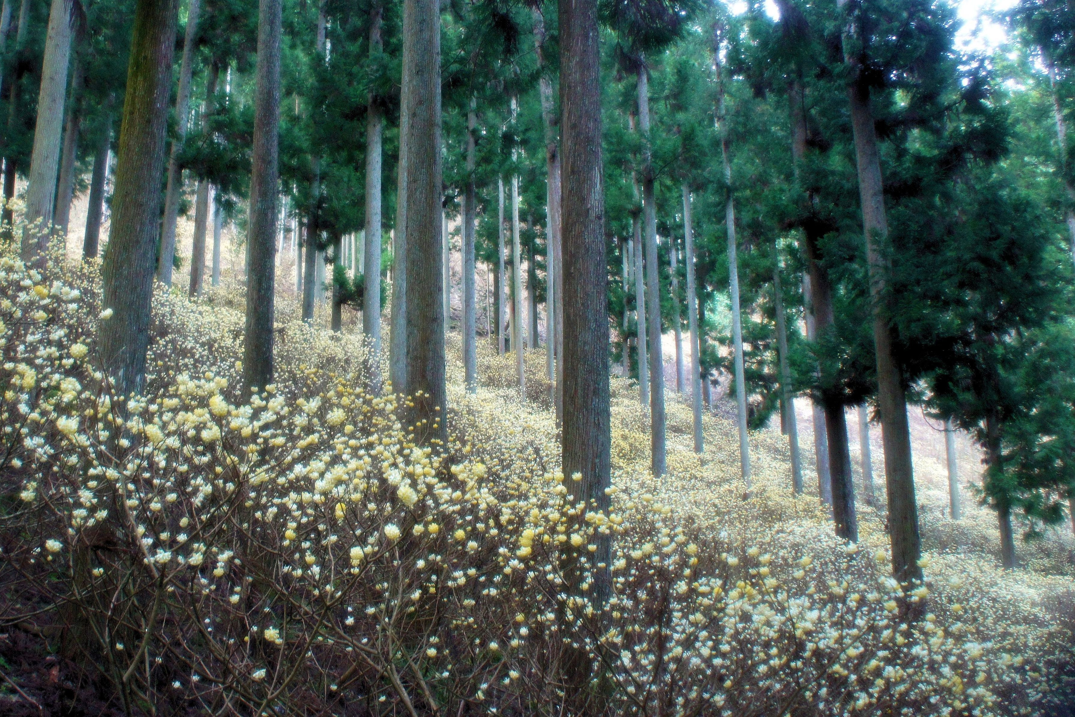 丹波市青垣町のミツマタ群生林に行きました。どこまでも続く(ように見える)ミツマタが見事でした。
