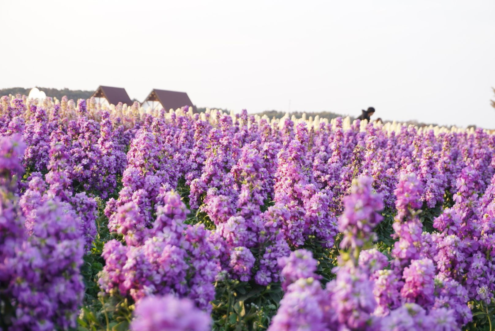 夕暮れの中で春の風に揺れる紫色 そろそろ暖かくなって欲しいです。