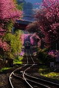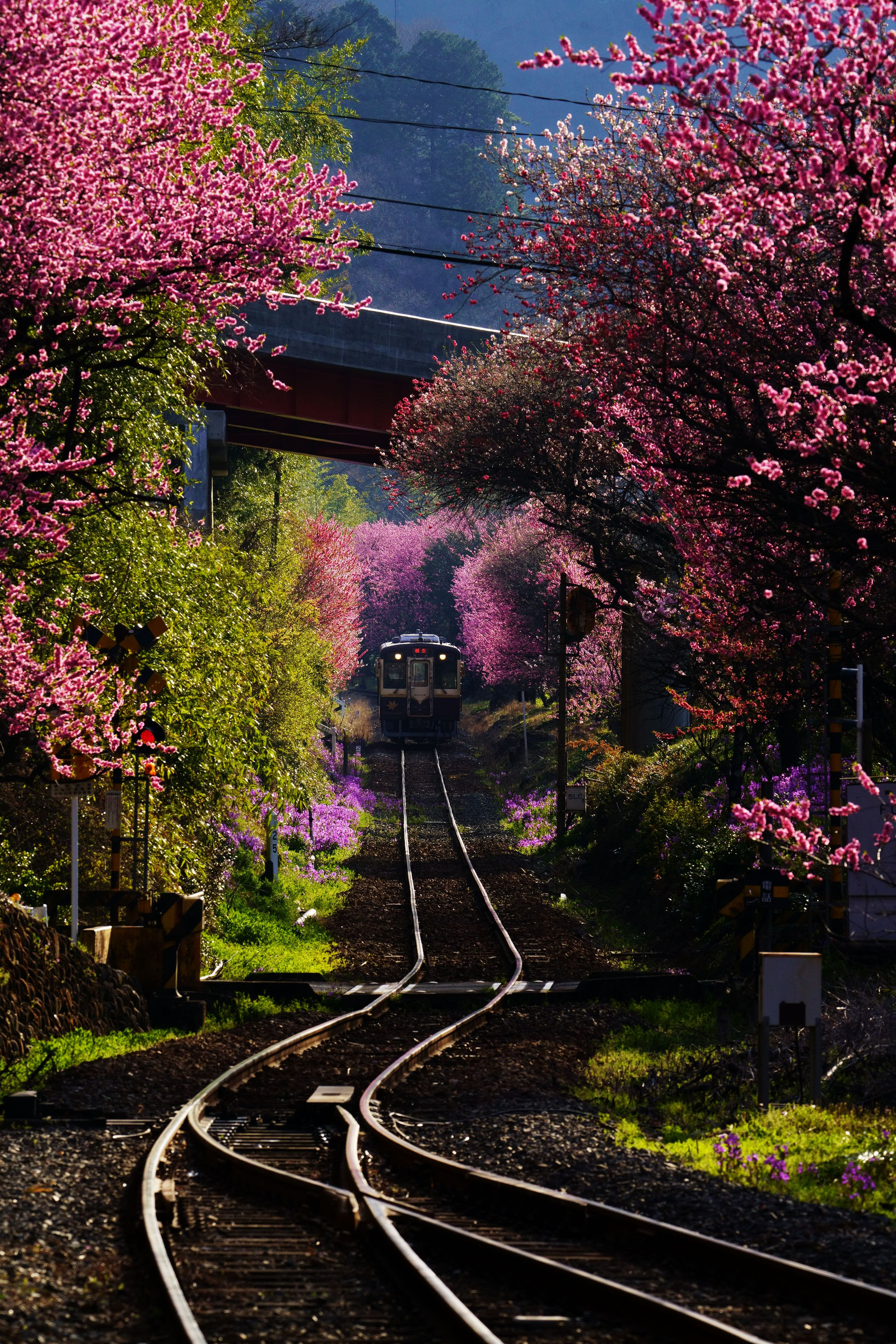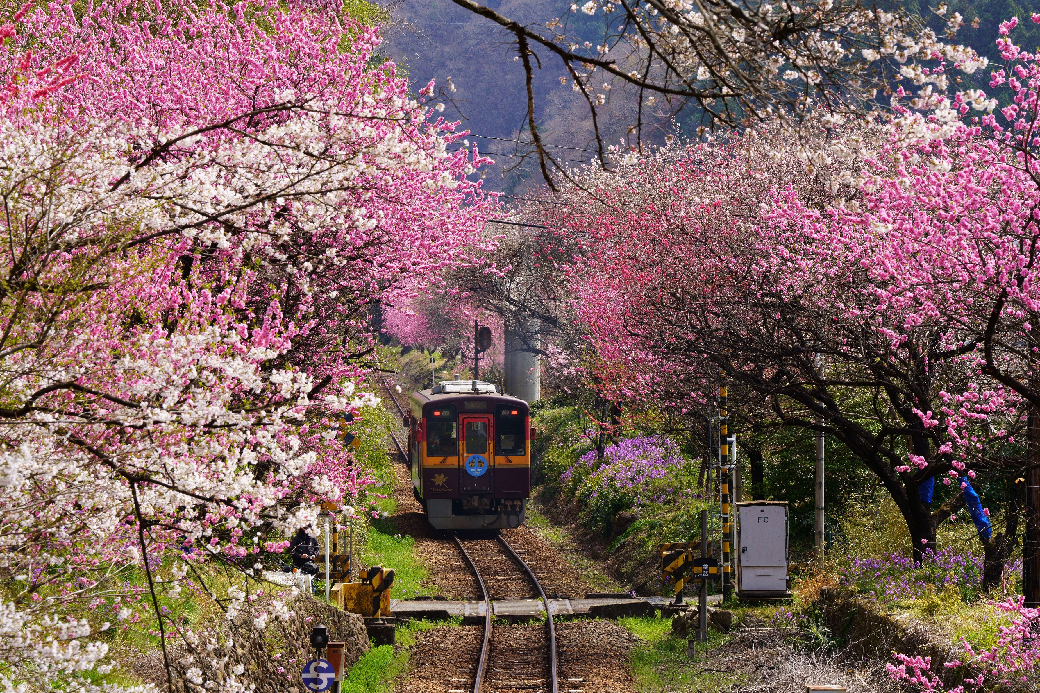 ヴィヴィッドな朝でした。はなももの森を駆け抜ける鉄路は夢のような美しさでした。 @わたらせ渓谷鉄道