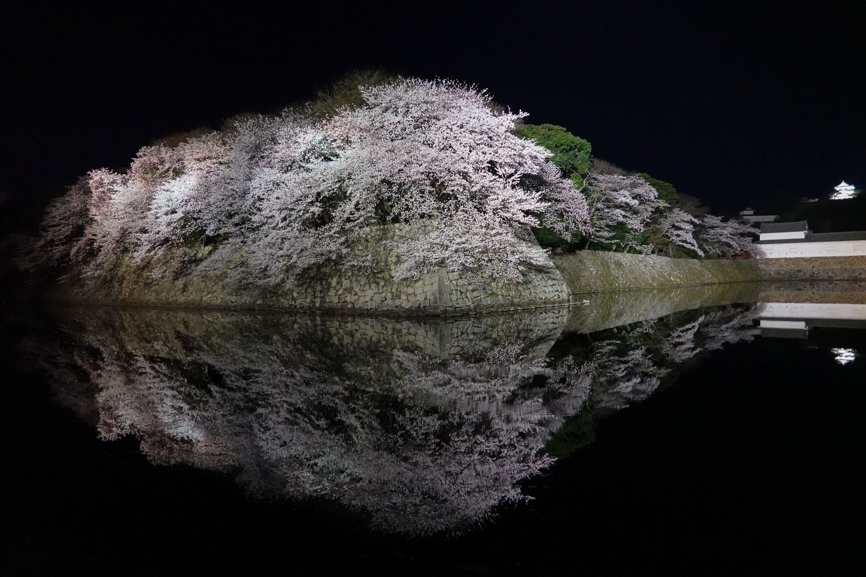 彦根城お堀の桜 ライトアップ中