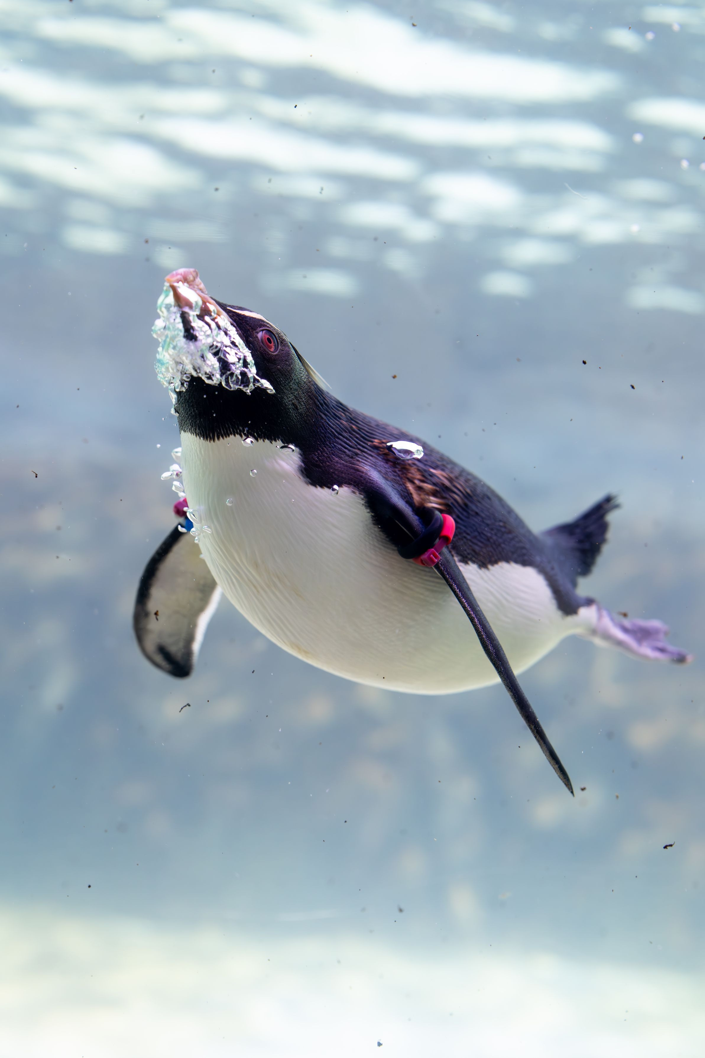 葛西臨海水族園で息継ぎする瞬間のミナミイワトビペンギンを撮りました