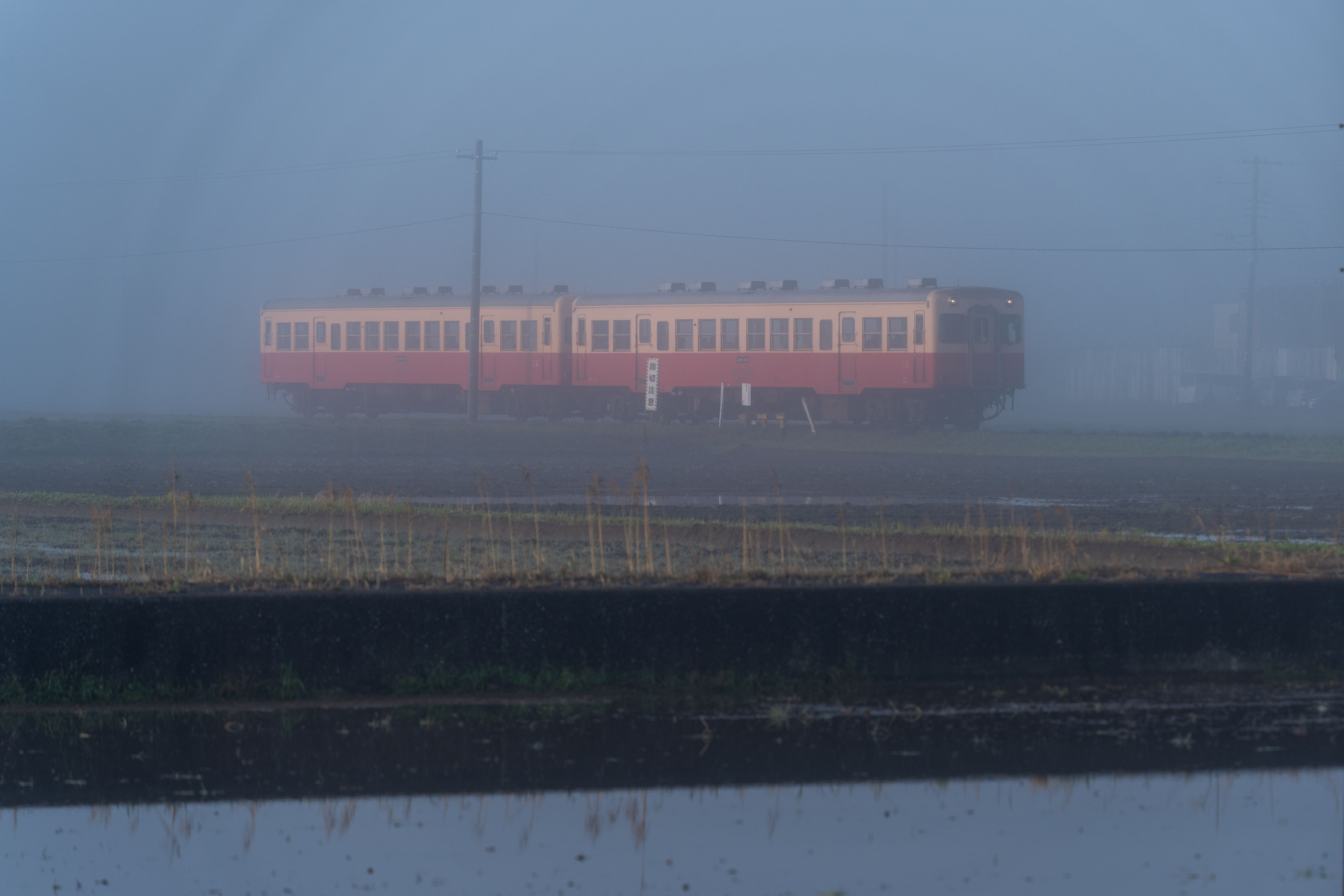 小湊鐡道キハ200が朝もやをついてやって来ました。