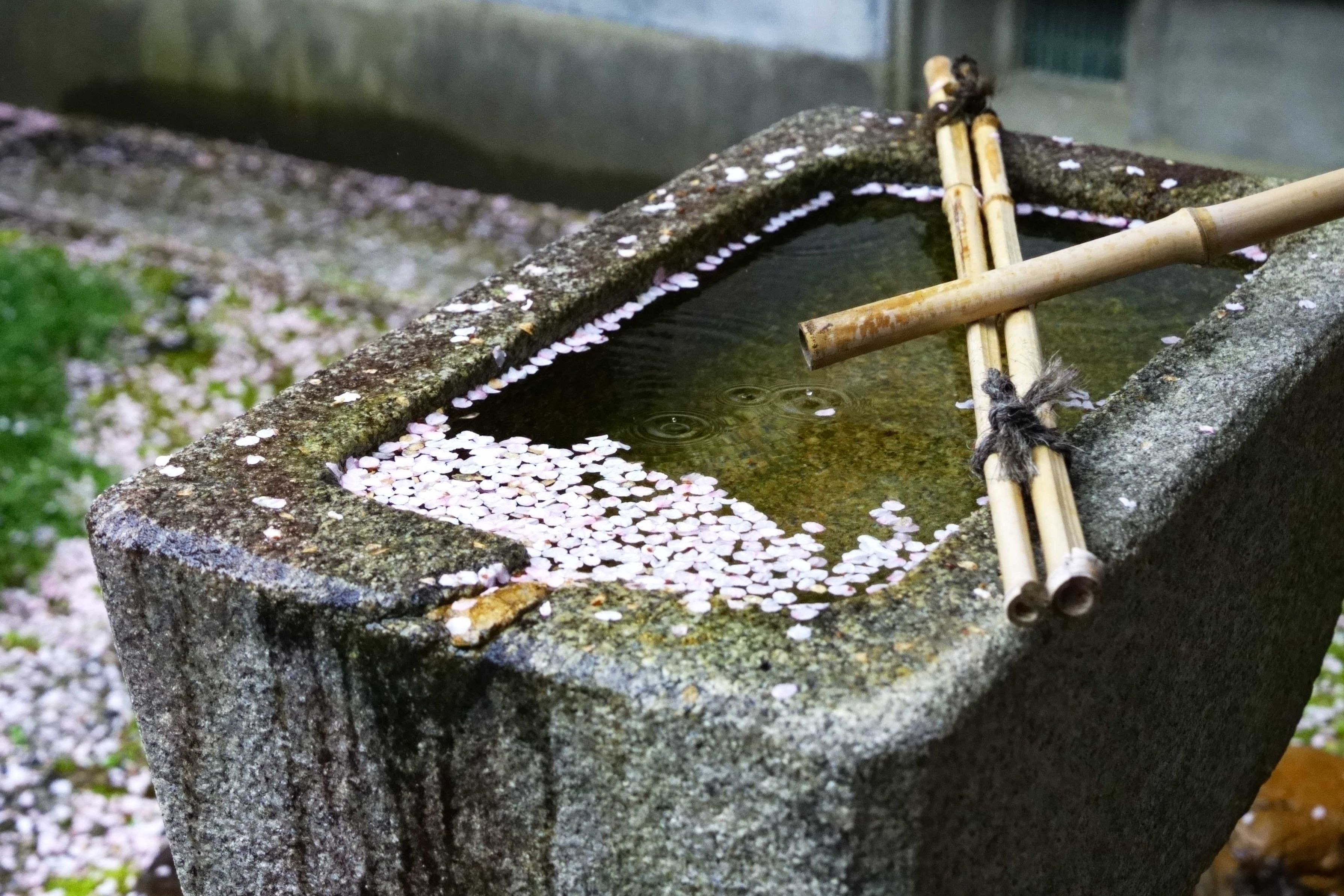 京都の東山、花チラシの雨で散る桜です