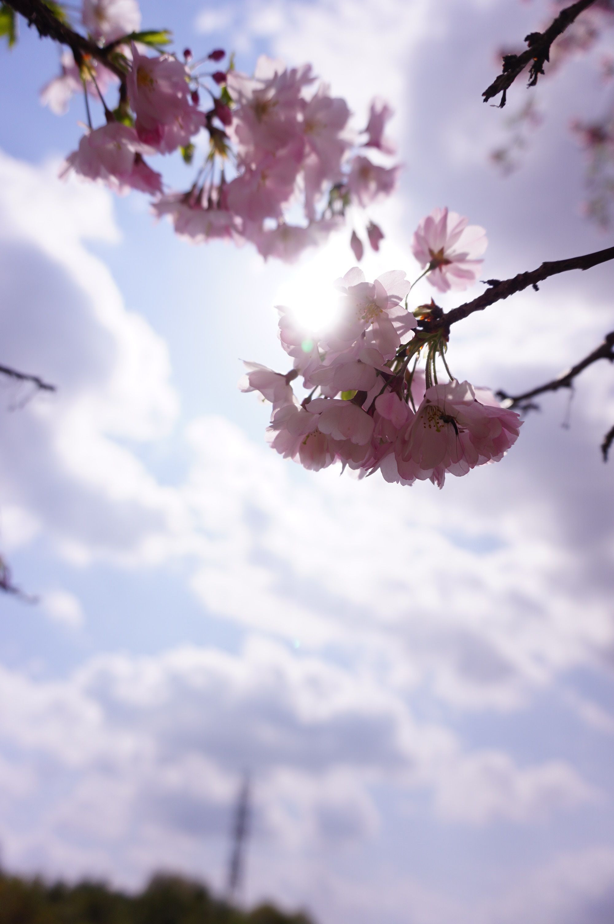 思川桜という種類の桜です。 太陽の光を中心に裏側から撮影してみました。