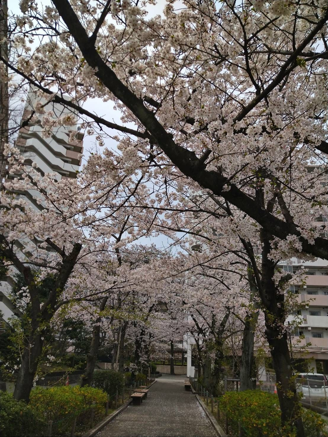 薄曇り、ゴルフバッグは重い、でも撮らずにいられなかった桜