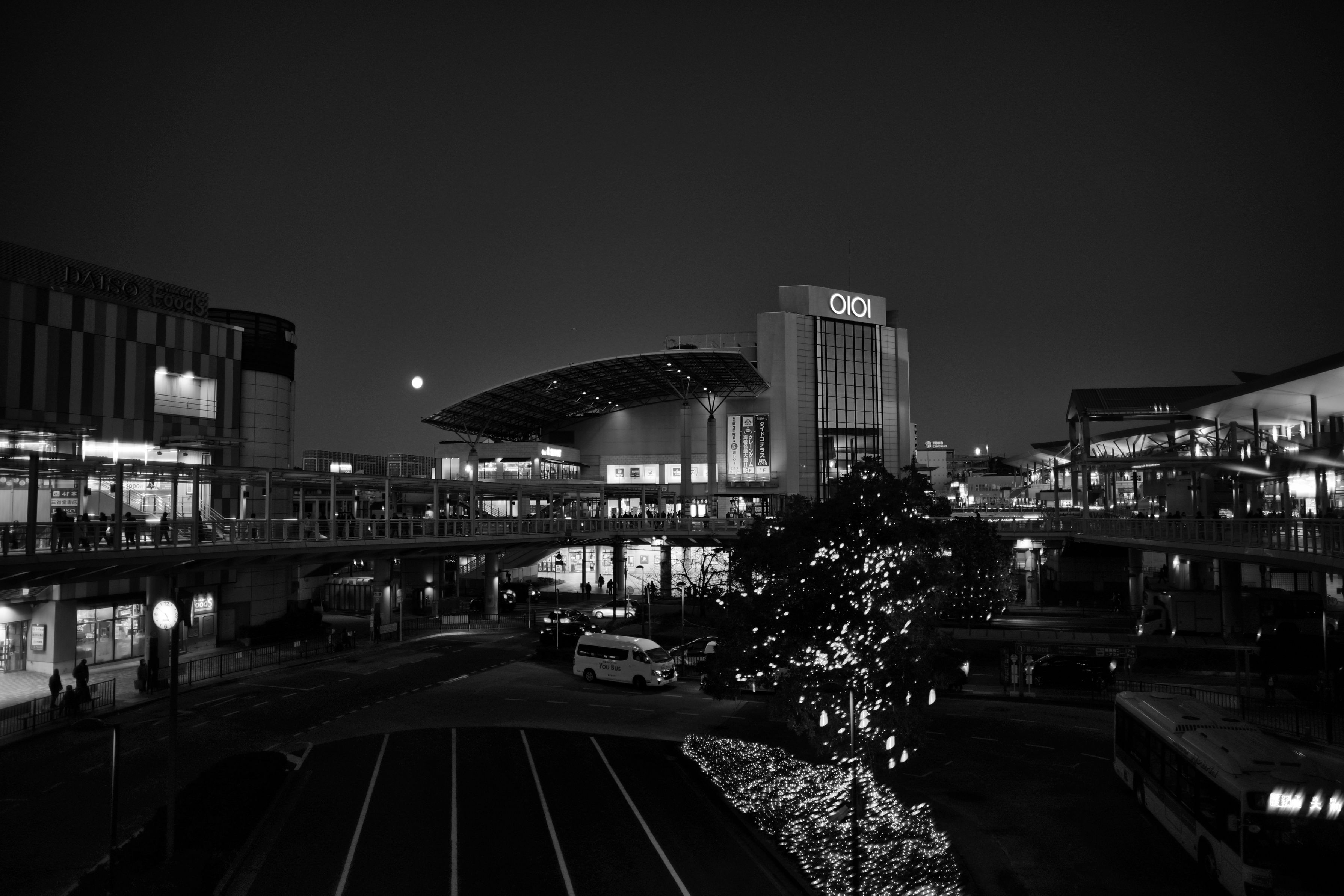 肉眼で見た月が良かったのになー せっかくなので街並みをこってりモノトーンで焼いてみました