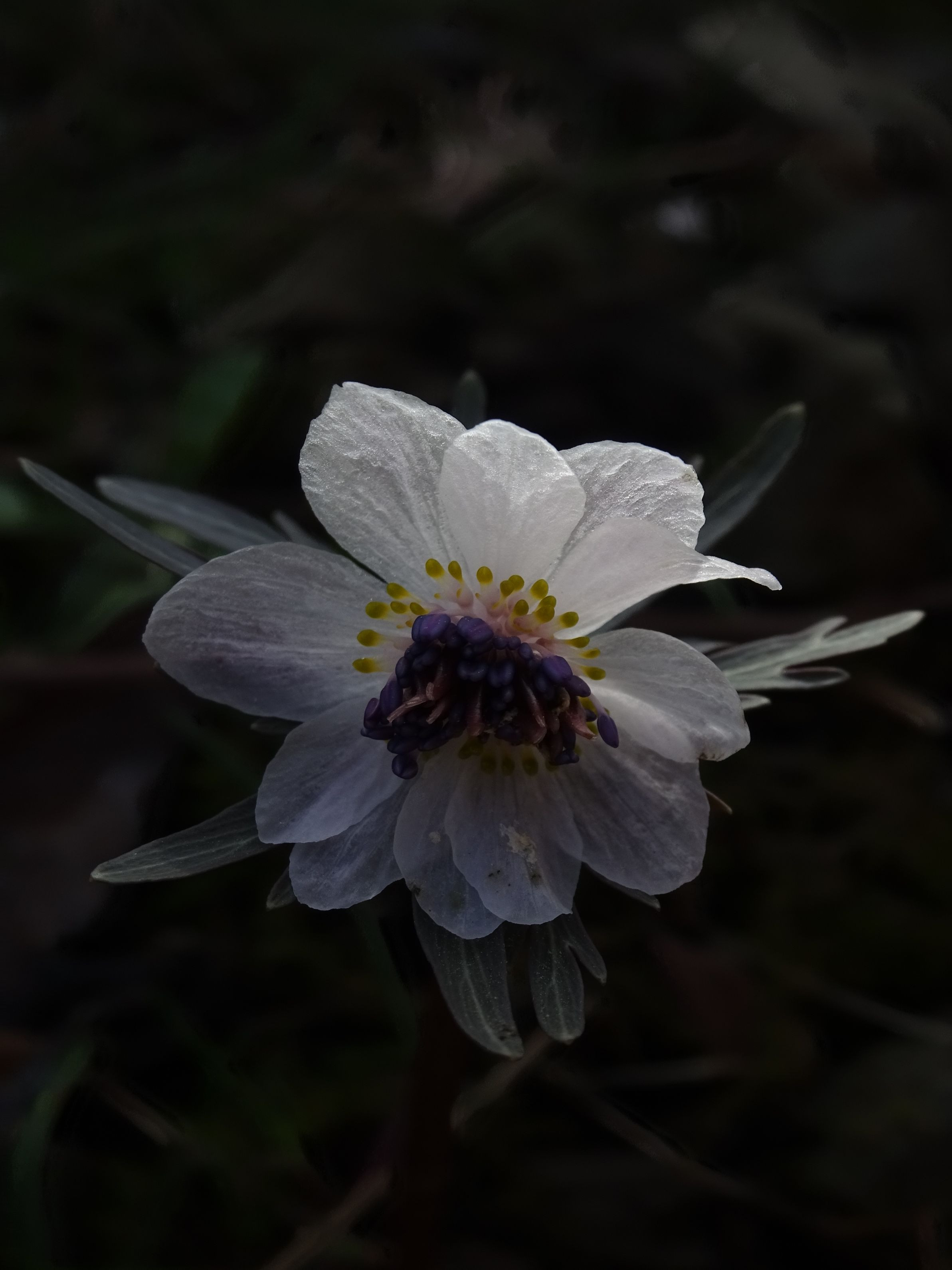 八重のセツブンソウ(節分草)です 存在感が違ったので迫力を感じるように撮ってみました