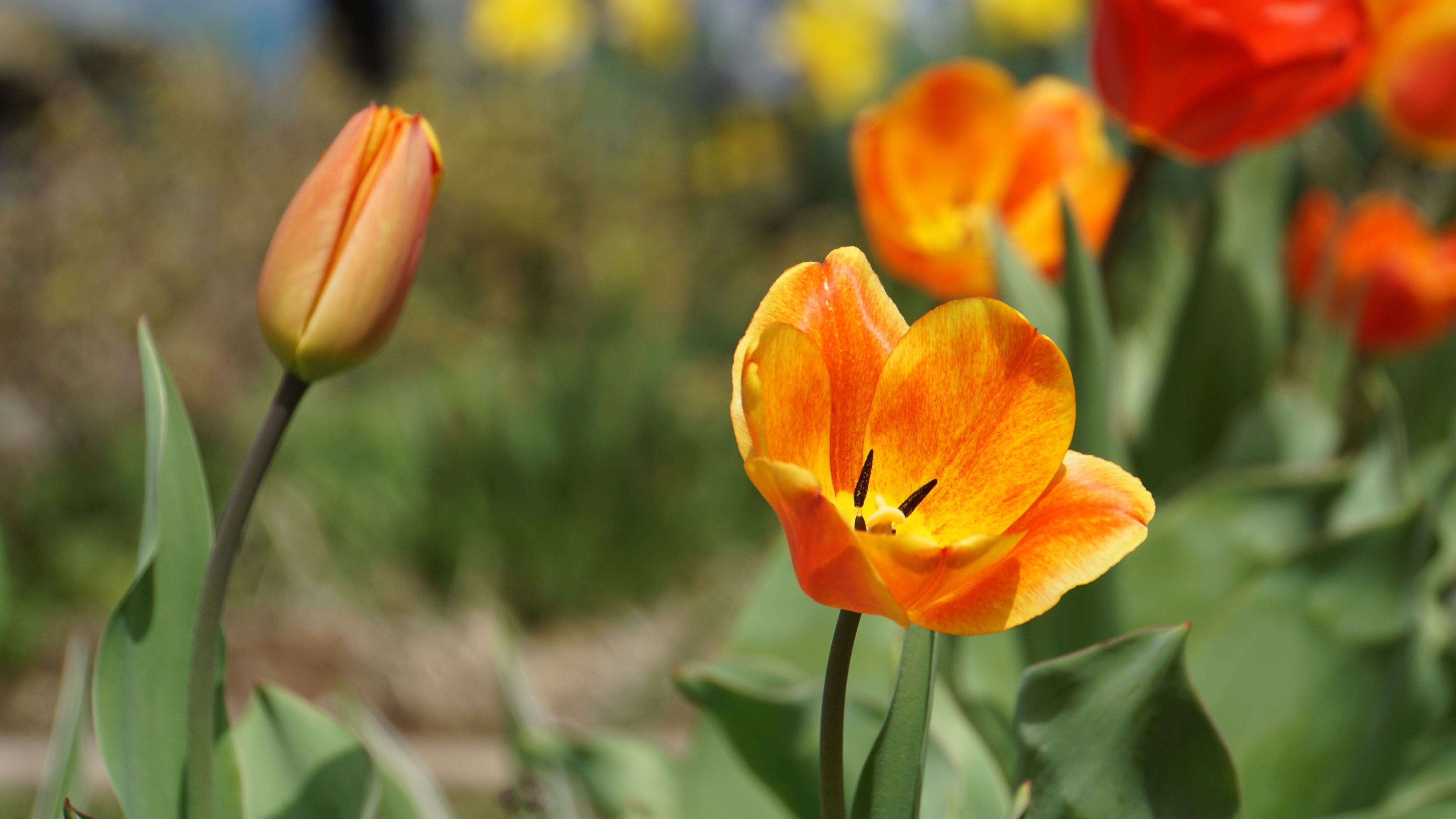 ここぞとばかりに咲き誇る華麗な色彩の先輩チューリップ