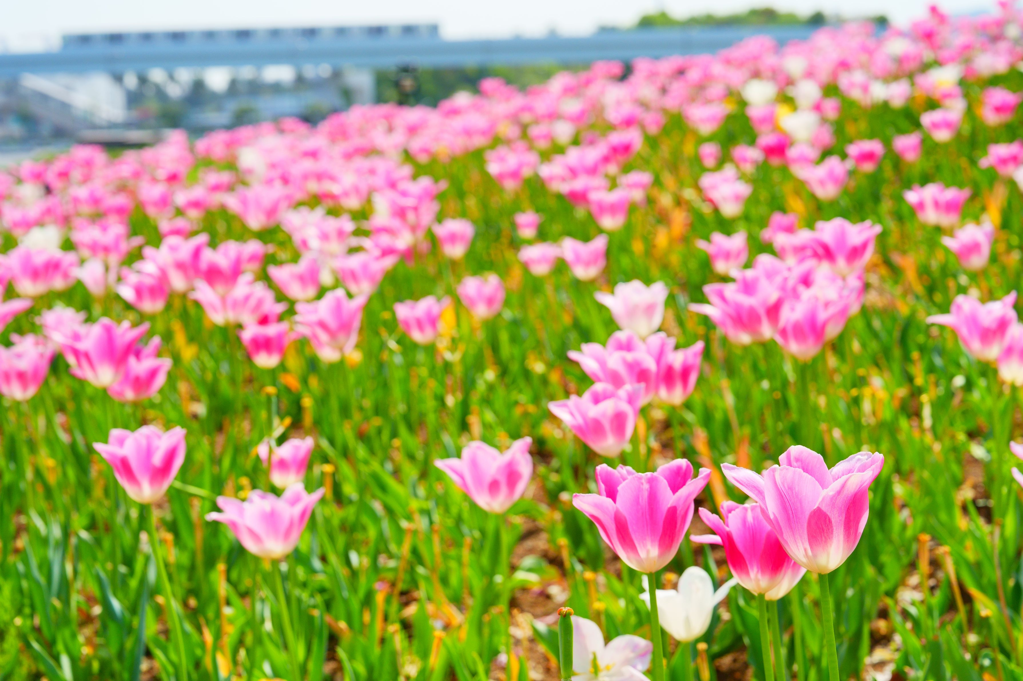 ゆりかもめ台場駅近くのフェスティバル広場にて撮りました。毎年4月にはチューリップがとてもきれいに咲き誇る場所です。もう少し早い時期であれば桜も楽しめます。満開のチューリップを主題に、ゆりかもめを添えて。 #フラワー2025#