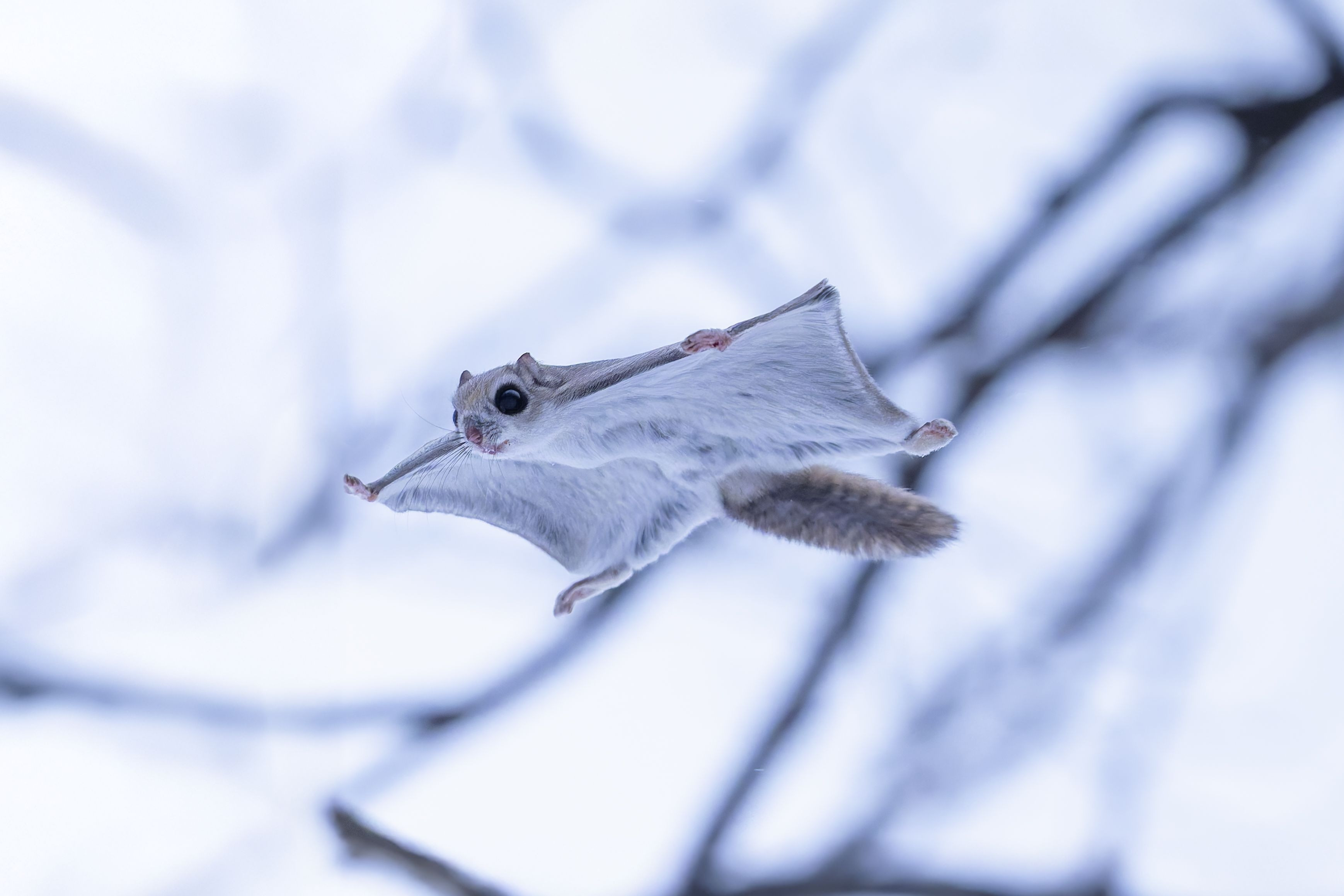 人生初のモモンガ撮影。暗い中を高速で飛ぶという非常に悪条件の中、最新のα1ⅡとFE300mm f2.8 GM OSSの高速で正確なAFで、見事撮影することができました。