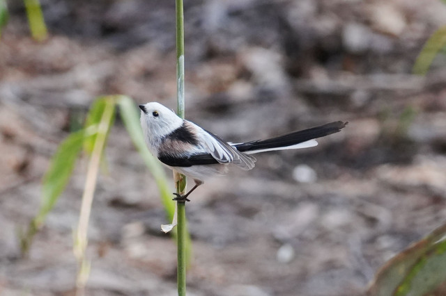 巣作りの材料集めの為か地表付近を飛び回るシマエナガさんをとらえました♪