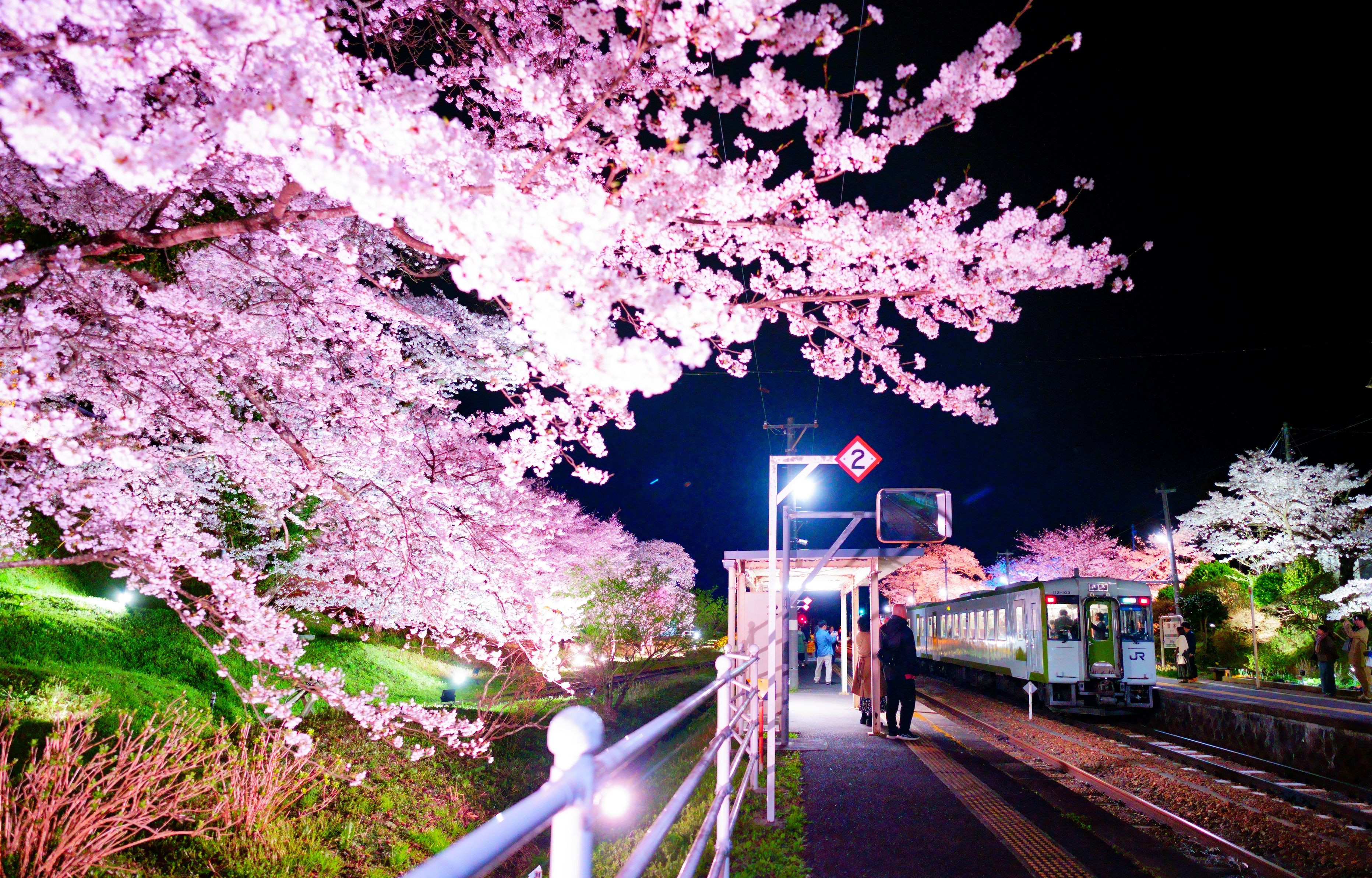 磐越東線_舞木駅にて こちらの駅では桜の季節に合わせて毎年ライトアップを開催しています。 今回が初めての訪問でしたが、想像を超える美しさに驚きました。 人が多く、なかなか電車と絡めるのは難しかったです。 #フラワー2025#