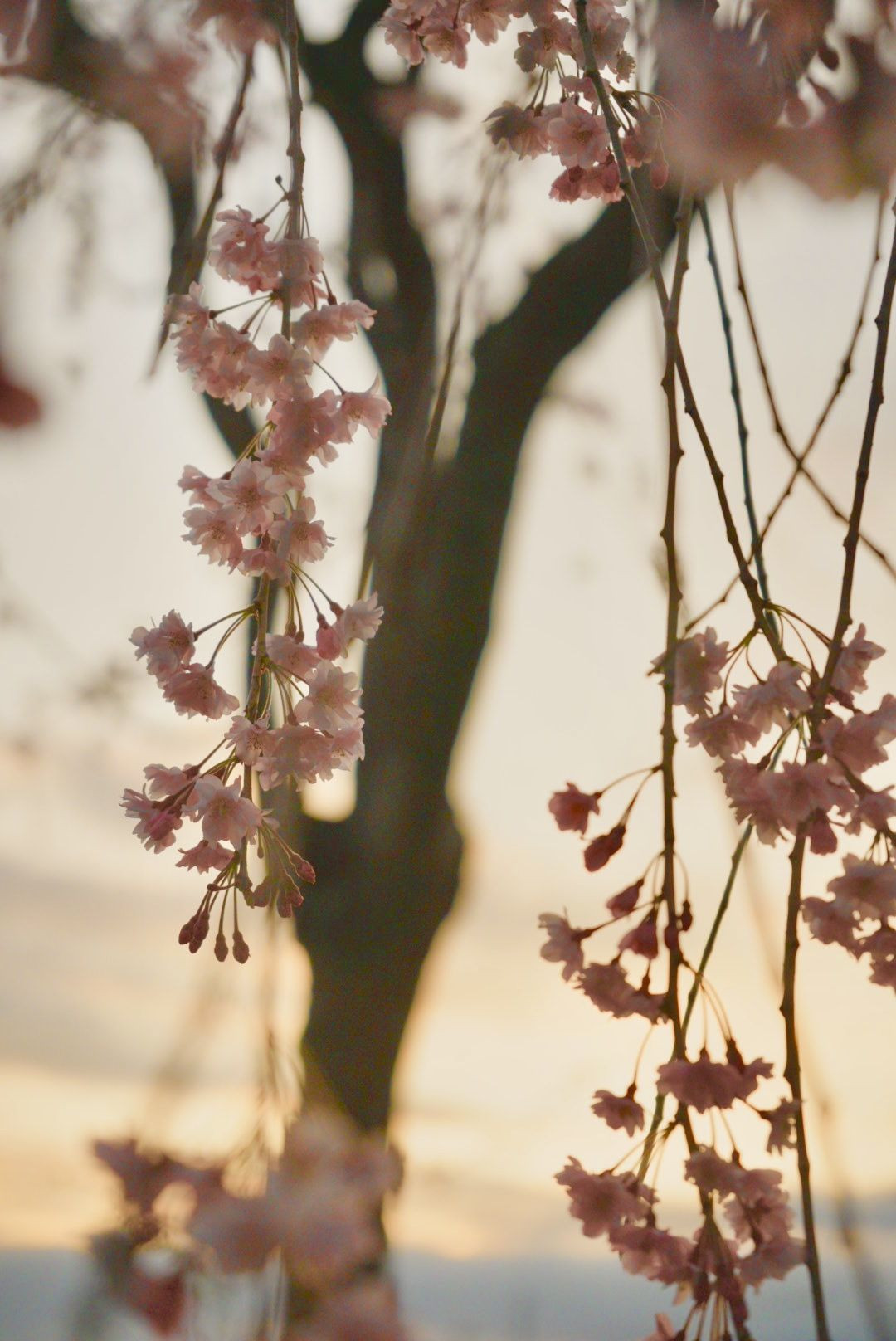 桜の季節も終わりそうなこの時期、夕方散歩に行ったときの一枚です。 しだれ桜は夕暮れがよく似合う✨