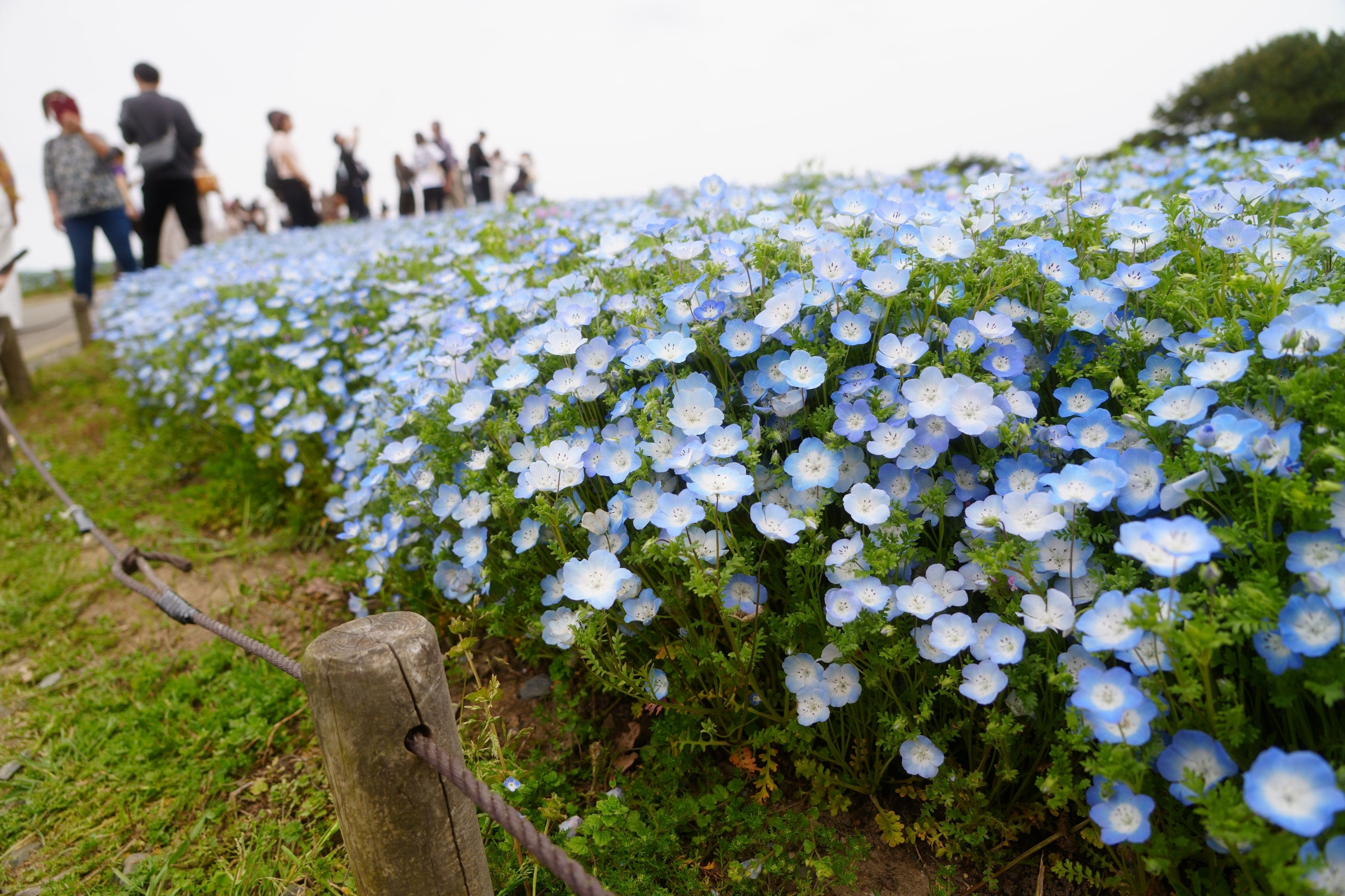 国営ひたち海浜公園のネモフィラ畑。 みはらしの丘を目指して登る人々!!