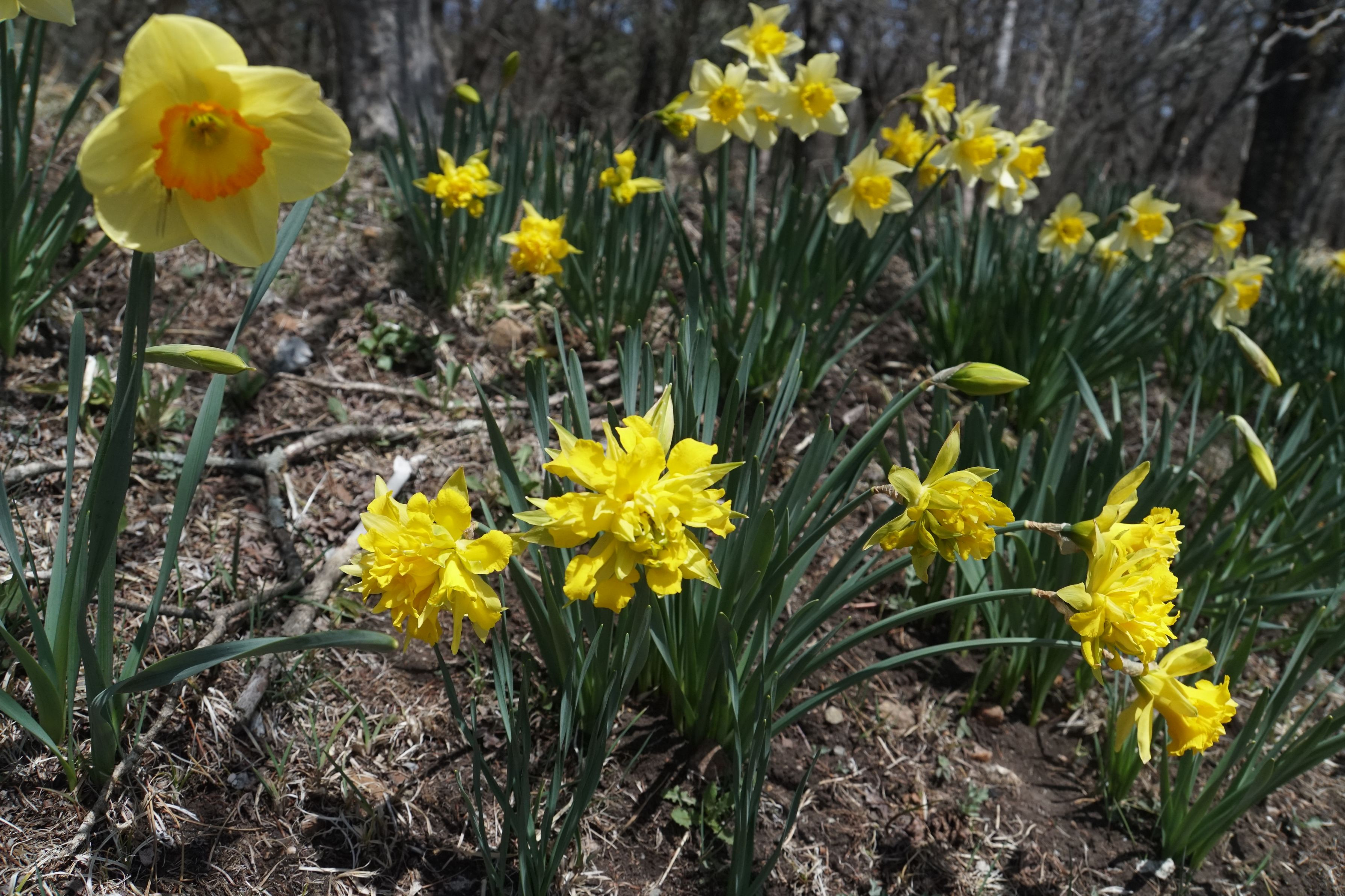 黄水仙の競演です。山梨県北杜市で撮影しました。