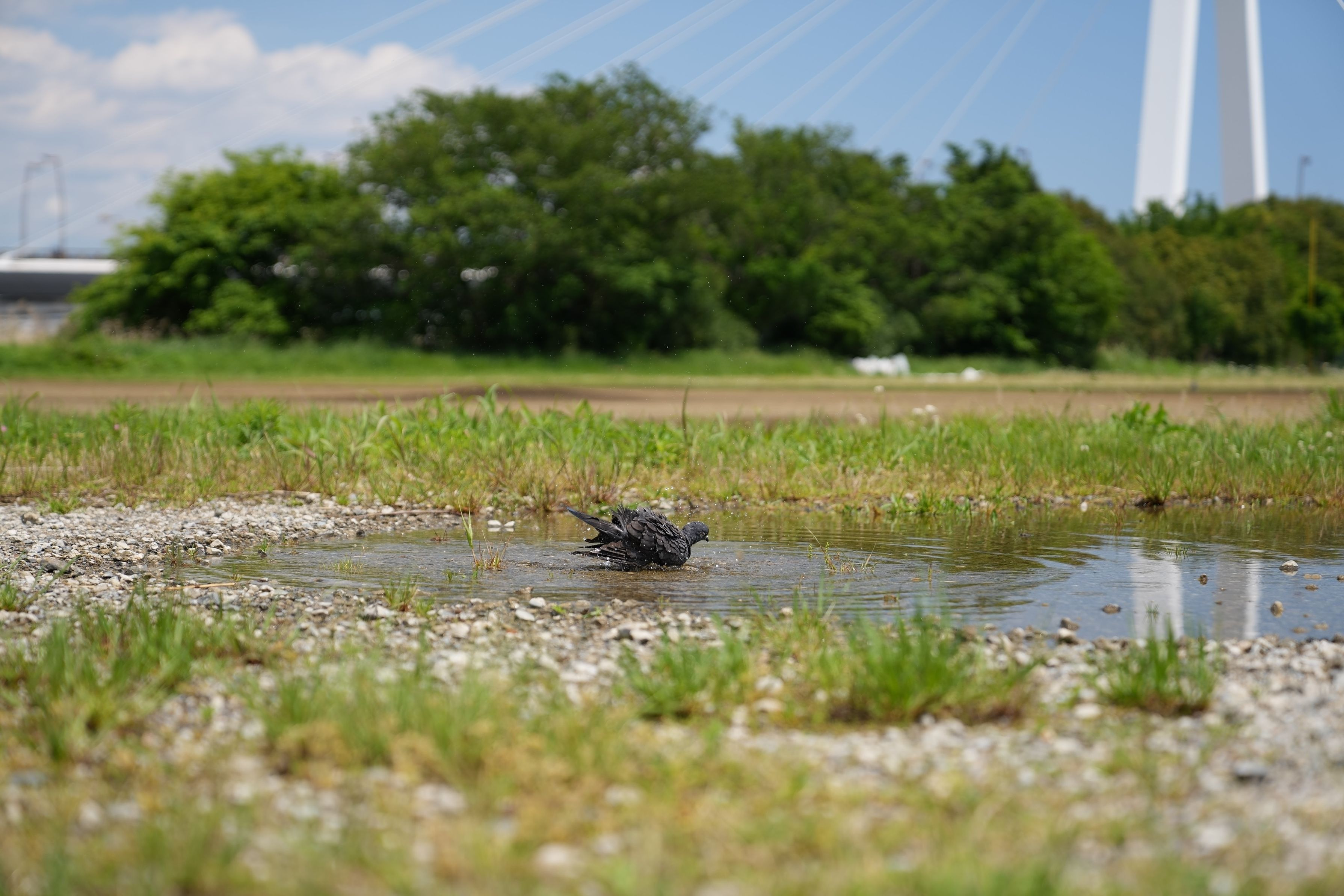 綺麗な水たまりで、1羽優雅に浸かっていました。 これ以上は寄らせてくれんかった。