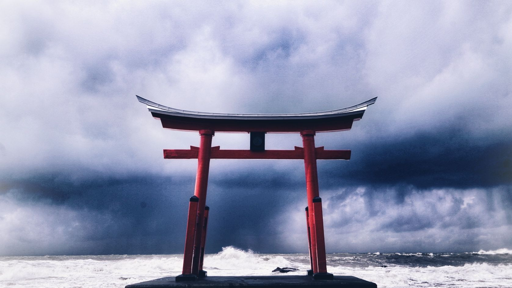 海の中にポツンと鳥居があります。 神社らしき本体は後ろ岩場にあります。 御朱印道の駅近くの温泉でもらえます。
