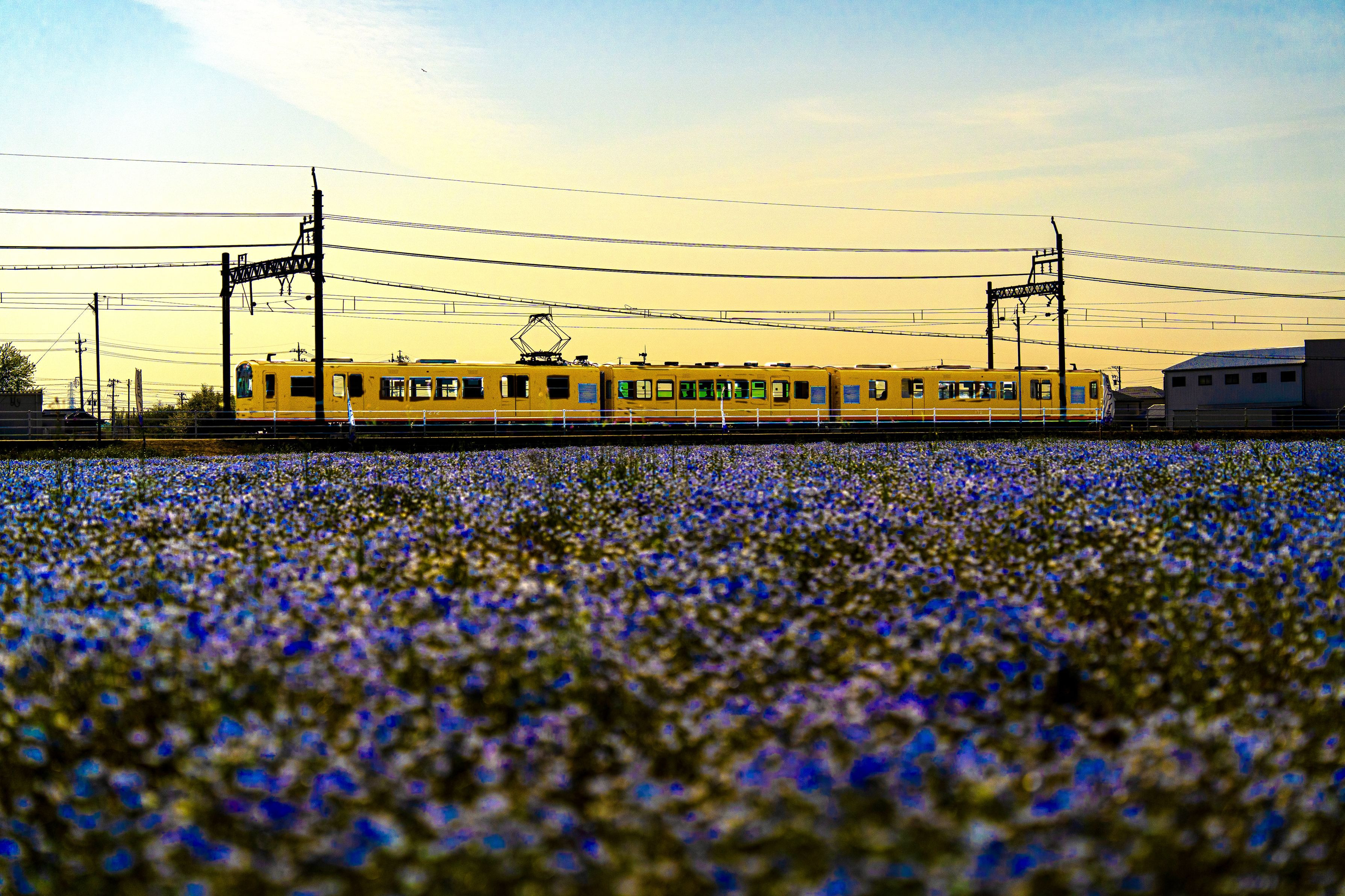 ネモフィラ満開の中を通過していきます