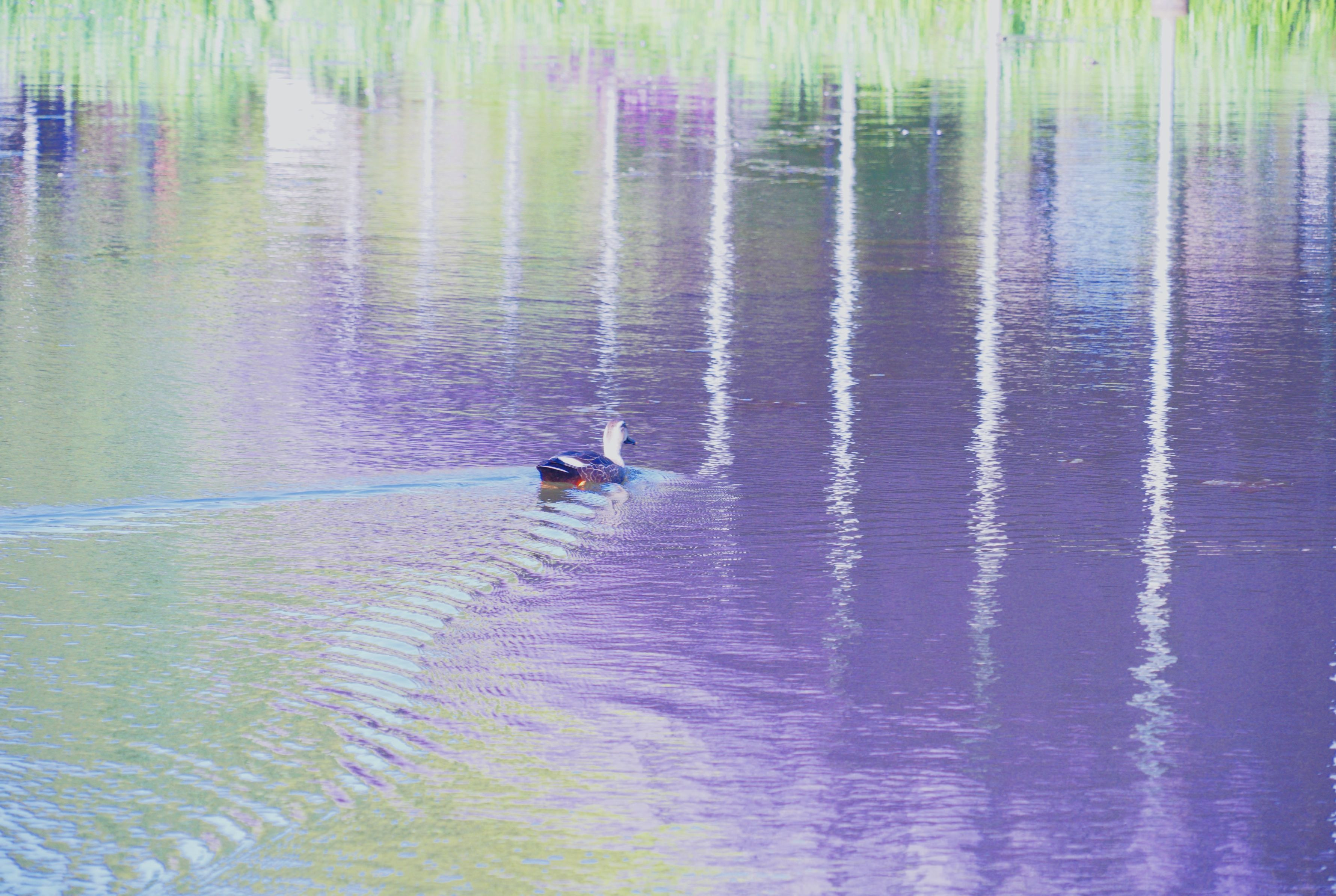 花満開のフラワーパークでは、水面も花のリフレクションが鮮やかです。