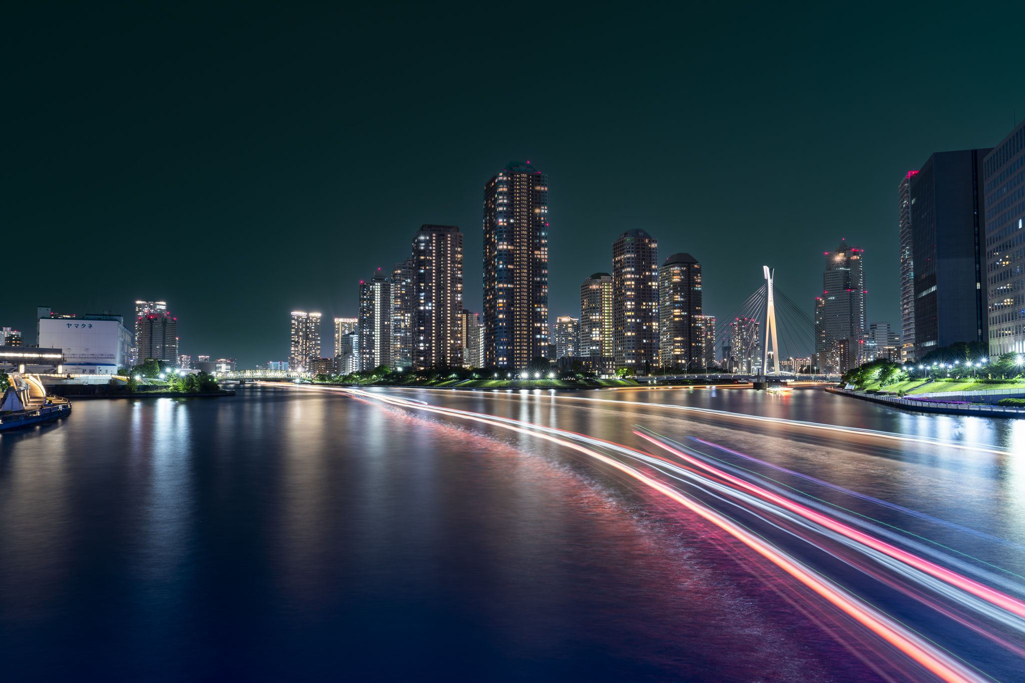 製品情報>My Sony>αcafe>未来へと走る光 ― 東京・佃島の夜景(reonalさん)