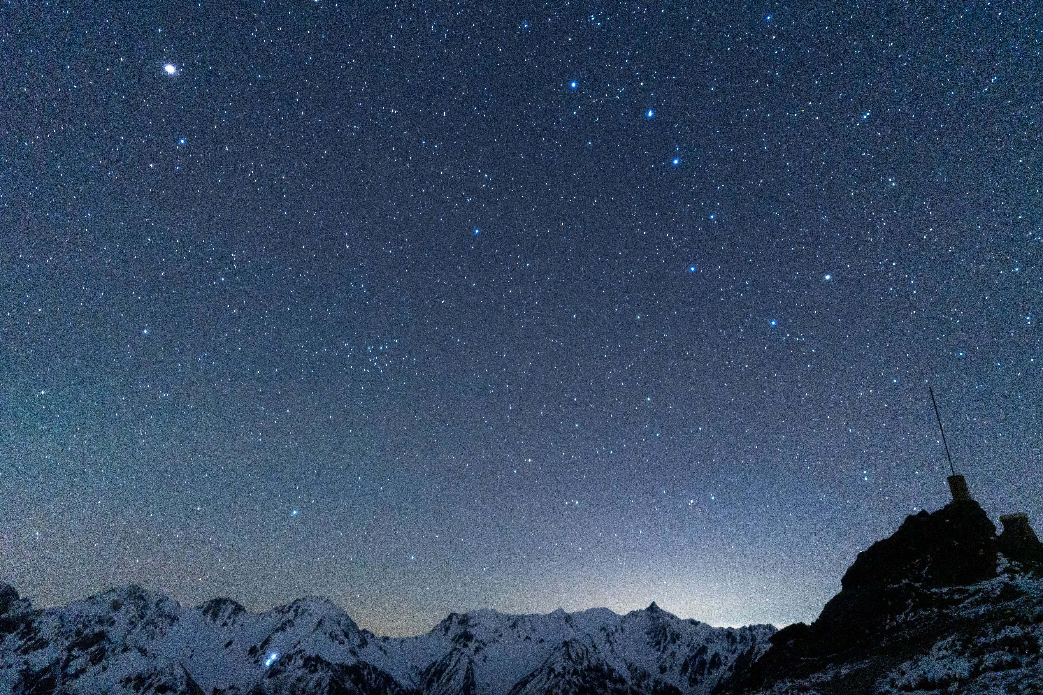 北穂高岳の南陵と東陵の間にある北穂沢を登るクライマー達と北アルプスの星景写真 彼、彼女たちの挑戦に感動しました🥹