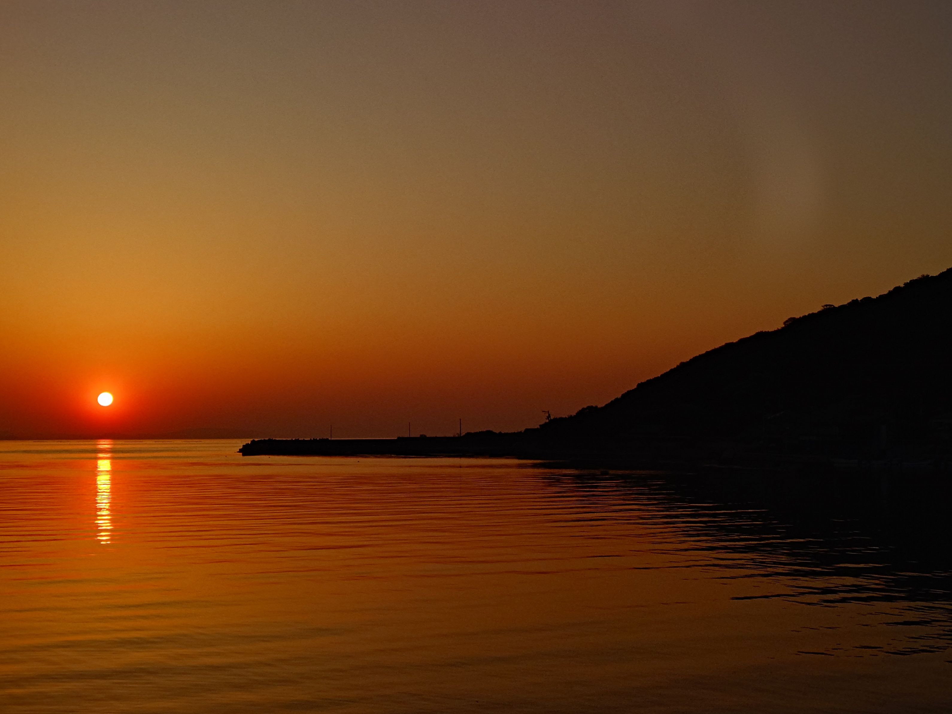 日出湾から見る夕日は美しい